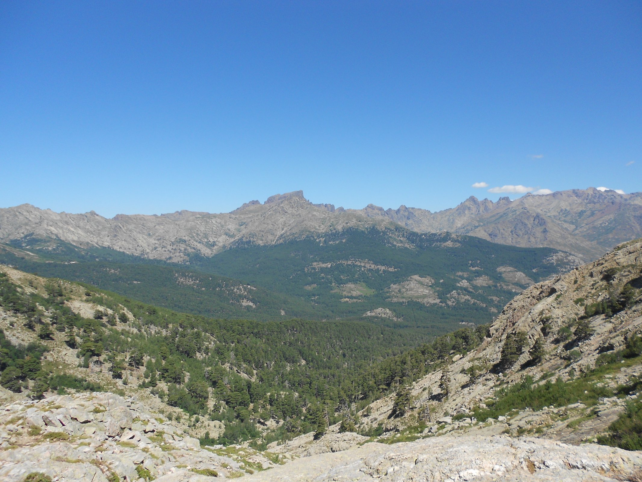 Druhý den ráno jsme se připravili na první túru do hor. V plánu byl výstup k jezeru Lac de Nino. Autem jsme vyjeli směr Porta Ota přes Albertacce k místu zvaném POPAGHJA ( údajně hájovna). Po cestě jsme potkali první korsické čuníky , kteří se váleli přímo u silnice. Od Popaghaja jsme se vydali po žlutém značení a lesem korsických borovic stoupali až nad úroveň lesa do sedla Col de Stazzone.V momentu, kdy jsme se přehoupli přes sedlo se nám otevřel nádherný pohled na jezero Nino umístěné uprostřed zeleného údolí s pasoucími se koňmi. Všichni jsme se stali na chvíli malými dětmi, které si chtějí pohladit koníčka. Focení nebralo konce.Po vydatné svačině jsme se vydali na zpáteční cestu po trase Gr 20 směrem do sedla Col de Vergio. Cesta vedla po hřebeni odkud byly krásné výhledy na celé údolí Niellu, nad kterým se tyčí masív Monte Cinta a výrazný vrchol Paglia Orba tzv. korsický Matterhorn.Po hřebeni jsme došli až ke kapličce do sedla Col de St. Pierre , odkud jsme sestoupili k silnici a po třech km došli na parkoviště POPAGHJA. Po cestě do Lozzi jsme se ještě zastavili u mostu před Albertacce , kde jsme se vykoupali v průzračných tůních řeky Vir.