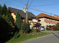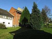 Pod hrází místního rybníka se nachází fotbalové hřiště, opodál dětské hřiště a odtud už jsem procházel zástavbou složenou z nových stavení i starobylých přestavěných gruntů. Všechny tyto domy (i dál v obci) byly obklopeny zajímavými předzahrádkami.