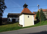 Pak už jsem se vydal vzhůru krásně upravenou svažitou návsí, jíž dominovala zděná zvonička, zbudovaná začátkem 19.století. Objekt je završen stanovou střechou, ze které vystupuje věžička „zvonové“ lucerny. V roce 1984 byl bývalý vstup do přízemí s kaplí od západu zazděn a nový vylámán směrem od jihu. Původní zvon pořízený za tehdejších 2400 korun byl za druhé světové války zrekvírován a nahrazen plechovým. Až do roku 1971 na něj chodil ručně zvonit místní občan Vojtěch Zavadil starší, pak se zvonění elektrifikovalo.