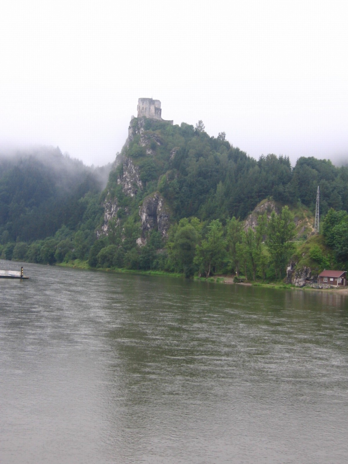 V Žilině nám jel hned vlak do Strečna. Ve vlaku jsme potkali slečnu průvodkyni z hradu Strečno, která nám věštecky předpověděla, že budem asi její první hosté :-) Kupodivu v 9h ráno. Venku pršelo a tak jsme šupli pod šup u hřiště a upgradovali oblečení na oblečení do deště, posnídali. První schody nahoru se ukázaly být dobrou rozcvičkou na zbytek dne. Nepříliš milá obsluha u kasy nám prodala lístky, přičemž jedenz kamarádů zjistil, že nemá s sebou ISIC, čímž se rázem zařadil do vyšší cenové kategorie - za blbost se holt platí a to i na Slovensku. Pak se nás ujala ještě s dalšími ranními ptáčaty ta milá průvodkyně Monika. Batohy jsme flákli za hradní vrata a šlo se na prohlídku :-) Ta byla na opravenou zříceninu docela zajímavá. Během prohlídky se nám vyčasilo a začlo opět pršet, ne-li něco víc. V 11h už hurá na Malou Fatru. Hodinu jsme hledali správný azimut s mapou i bez ní. Slavíčkova pláštěnka byla téměř k ničemu, páč se pod ní stejně tak potil, že snad i měl víc mokro pod ní :-) Mikroklima je mikroklima holt. Časem stezka přešla ve stezku do kopce. Déšť neustával a tak jsme se ani nezastavovali u Starého Strečna (což byla další zřícenina). Kurňadokopec se měnil chvílema v kurňa-kurňadokopec. Déšť máchal lesní půdu, takže blatíčko bylo skoro až za ušima. Slavíčkovy návleky začly asi po hodině propouštět, takže si čvachtal v bazénku. Počas cesty asi 2x ždímal ponožky, asi že si nevšim, že prší a že země v lese už je taky durch, že netřeba jí zalévat :-) Panoramata nic moc z lesa vidět nebyly a tak se ani moc nezastavovalo. Můj batoh se změnil na prasečí batoh, páč jsem ho jebla jako jediná do mokrého jehličí, čili jsem se v zápětí stala dikobrazem obalena jehličím :-) Ondra vytáh svoje půjčené hůlky na trek, které se ukázaly jako dobrá hustomasérna. Asi ve tři odpolko jsme konečně dorazili na Chatu pod Suchým a nikoho ani nenapadlo pokračovat podle plánu dál a po zjištění, že noc v posteli ve vlastním spacáku stojí 150,-Sk bylo jasno. Přespíme.