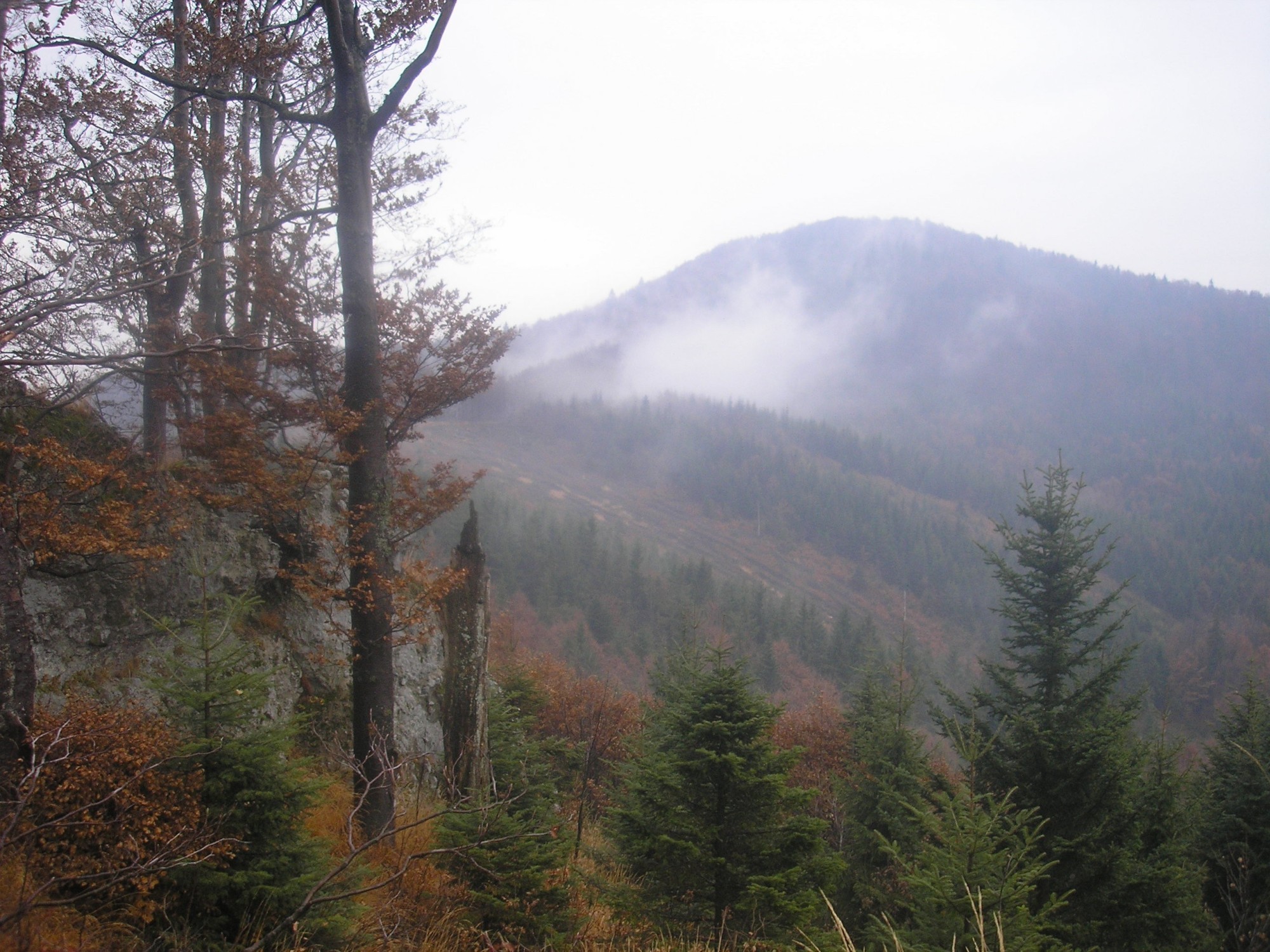 „Prišiel Silian od severu, sboril Kremnicu a Turovo i všetky hrady; i bolo rokov po Turovi 280.“ Dozvedáme sa,že Silian je Slovan, Tur bol vládca, ktorý vládol tejto krajine v počiatkoch kresťanského letopočtu a rok 280 po Turovi je ešte pohanský letopočet, ktorý sa zhoduje s rokom 280 po Kristovi. Ktovie, ale celé to znie veľmi zaujímavo a záhadne a súdny človek, ktorý zahodí predsudky, určite bude o tom rozmýšľať a snažiť sa zistiť čo najviac. Musím pripomenúť, že nápis na Velestúrskej skale naozaj existuje a turista ho pri minimálnej námahe aj nájde. Viac o Velestúrskom nápise a podobných pohanských nápisoch v Kremnickom pohorí ( na neďalekom Smrečníku, Dievčej skale pri vrchole Kremnického Štósu, Malachovskej skale, Vysočine) píše Oskár Cvengrosch na www.tajnedejiny.sgo.sk. Celá táto skupina vrchov od Mýtneho Vrchu, cez Zlatú Studňu, Velestúr, až po sedlo Tri kríže pôsobí na človeka zvláštnym tajomným dojmom. Kráčate po hrebeni, cez ktorý sa prevaľuje hustá hmla, pomedzi pokrivené buky bizarných tvarov. Okolo sú väčšie,či menšie skaly, ktoré pripomínajú zrúcané hrady a tvoria skalné mestá. Proste divočina, ako sa patrí. V tomto dušičkovom období cestou po kremnickom hrebeni nestretnete človeka, skôr srnky, alebo jeleňa, no a na prítomnosť medveďov v Kremnických horách vás upozorňujú viaceré tabule. Ja osobne pri prechode hustým lesom radšej pískam a klepkám turistickými palicami, aby som náhodou nejakého maca neprekvapil. Od sedla Tri kríže ďalej na juh hrebeň postupne klesá cez Rudnú poľanu a sedlo Laurín,až pod 1000 metrov nad morom. Dostaneme sa až na Brestovú, ktorá je v nadmorskej výške 930 metrov. Kto tu nebol dlhšie, bude asi prekvapený. V tejto lyžiarsky už takmer zabudnutej oblasti sa stavia veľká horská chata, alebo horský hotel. Poloha je to pekná, takže je možné ,že sa Brestová stane vyhľadávaným lyžiarskym strediskom. Brestová máva výborné snehové podmienky, s dostatkom snehu, ktorého býva po väčšine zím bežne vyše pol metra, čo je na to, že je to cestou len 18 km od Zvolena naozaj dosť. Z Brestovej sa dostaneme po lyžiarskom svahu takmer až na vrchol Sielnickej poľany. Pôjdeme okrajom Národnej prírodnej rezervácie Mláčik. Rezervácia má rozlohu 147 hektárov, je v nej 11 lesných typov troch vegetačných stupňov. Stromy, popod ktoré vedie turistický chodník, dosahujú úctyhodné rozmery, mohutné sú hlavne jedle, buky a smreky. Prejdeme cez Za vrch lúku a Veľký Son plytkou dolinou až k Danielovej chate, ktorá je postavená asi na najkrajšom mieste v okolí. Ďalej od chaty pôjdeme dolinou Bienskeho potoka po asfaltovej ceste asi pol kilometra. Tu si musíme dať pozor, aby sme nezabudli odbočiť z cesty.Chodník vedie miernym stúpaním cez les ľavou stranou doliny. Asfaltová cesta vedie príjemnou dolinkou síce ďalej, ale určite ďalej po nej nechoďte, lebo po ďalších dva a pol kilometroch zistíte, že sa ďalej nedostanete, lebo celá dolina je oplotená a neprechodná – je v nej diviačia zvernica. Náš turistický chodník sa na vrchu kopca stáča doľava a zostúpi Nad Suchú dolinu. Potom dolinou Kováčovského potoka popri chate Ovčiar prejdeme až ku Kováčovskému rybníku. Pod rybníkom sa dolina končí a začínajú Kúpele Kováčová. Po ľavej ruke budeme mať detský liečebný dom Marína, asi o 200 metrov ďalej je liečebný dom Detvan. Od neho je to už len 100 metrov do cieľa našej cesty, zastávky autobusu a parkoviska pod kováčovským termálnym kúpaliskom. Oproti zastávke stojí novostavba Kostola svätého Gorazda (farnosť tu bola založená v roku 1996).