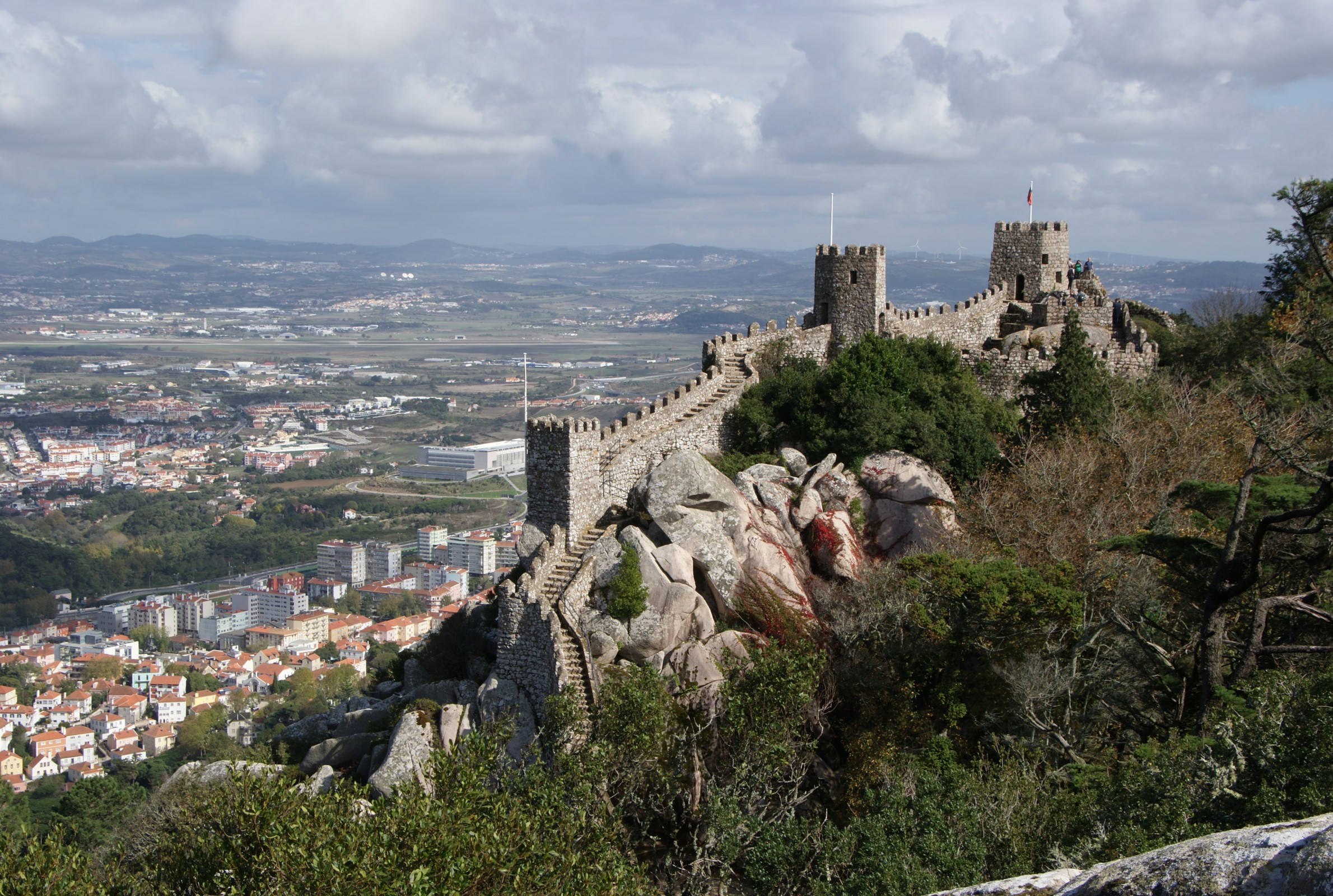 Ten je zdejší nejstarší architektonickou památkou. Castelo dos Mouros – postavený na žulových skalách pohoří Serra v 8. století – mě nadchnul. Tím netvrdím, že je opravdu naprosto úžasný a zcela výjimečný, ale můj velmi kladný vztah k hradním zříceninám je všeobecně znám a zde nás navíc - asi za předchozí příkoří – odměnilo i sluníčko, modrá obloha a pěkné výhledy. A na (nejen) mém nadšení nic neměnil ani chvílemi poměrně silný a chladný vítr, ani prudké výstupy ani fakt, že velká část hradu byla zničena ve 12. století Afonsem Henriquesem a zachovaly se zde „pouze“ čtyři věže, pásy hradeb i krásná cimbuří, část románské kaple nebo stará maurská nádrž. Maximální spokojenost, výhledy hlavně na Sintru s okolním národním parkem a vzpomínka na Frantu (jenom nevím, jak by se tady zlínský skalník s množstvím okolních kamínků psychicky i fyzicky vyrovnal). O hradu je zřejmě celkem zbytečné se jakkoliv dál rozepisovat, protože vše ostatní prozradí fotogalerie.