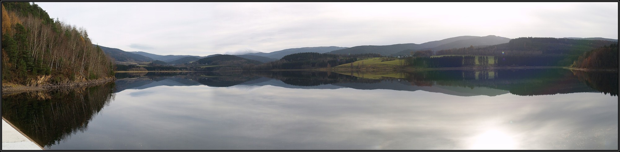 Na kole jsem tam byl už vlétě a tehdy mě napadlo, že vyfotit lesnaté stráně v okolí přehrady na podzim by nebylo od věci. Jenomže když se začalo barvit listí, bylo buď zataženo a mlha, nebo pršelo, zkrátka počasí příliš nepřálo. A když se ve druhém listopadovém týdnu udělalo odpoledne krásně a slunečno, měl jsem rozdělanou jakousi práci kolem chalupy...