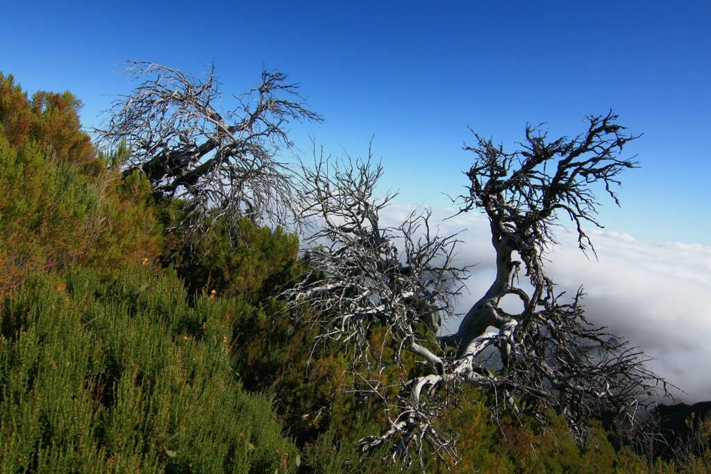 Výhledy z Pico Ruivo (Červeného vrchu). Je s výškou 1 862 m. n. m. nejvyšším vrcholem Madeiry a třetí nejvyšší horou Portugalska. Santana - Faial, region Madeira, Portugalsko.