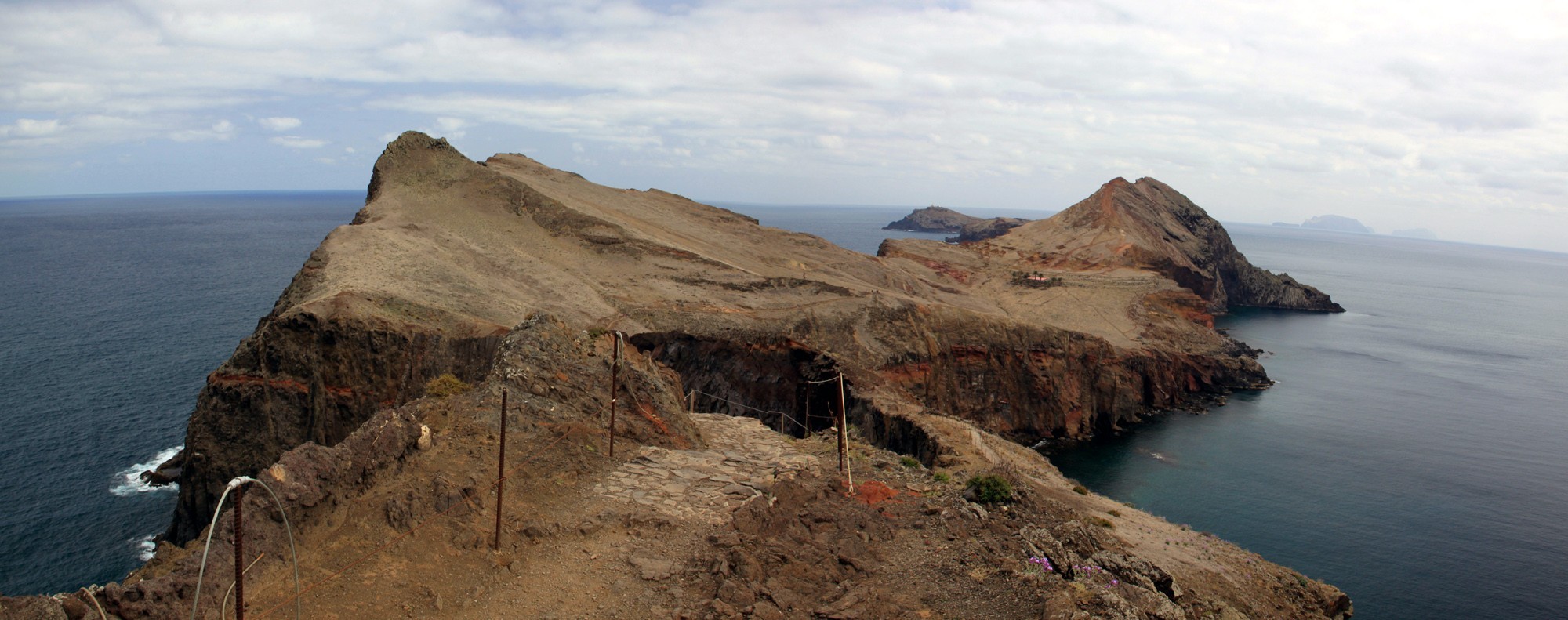 Tůra má podle průvodce trvat 2,5 hodiny, my to s dalšími 2,5 hodinami na kochání se zdejší nádherou zvládáme za 5 hodin. Cestička jako mlat, počasí nádherné, turistů přiměřeně a všude spousta ještěrek. Jen ten zatracenej těžkej batoh mám chuť odhodit u cesty, na Madeiře se přece nekrade. Ale jsem vycepovaná z Čech takže to nakonec neriskuju. Před nejvýchodnějším cípem je malý obchůdek pro turisty s přístěnkem, dokoupíme si tady vodu a necháme batohy. Před námi je už jen krátké, ale poměrně strmé stoupání na nejzažší část cípu. Krásně zabarvené skály pobřeží a všechny odstíny moře ani nemá cenu popisovat, protože to se musí vidět. Nahoře nás vyfotí příjemná Němka a my zase na oplátku jí, chvíli se kocháme malými ostrůvky před námi a pak zpátky dolů pro batohy. V přístěnku opět potkáváme tu Němku i s jejím "lazy husbandem" jak ho nazvala. Jsou to oba sympaťáci, pán vypadá jak motorkář, dlouhé bíle vlasy a vousy a z toho jak ho manželka nazývá si hlavu nedělá. Bavíme se o cestování a svačíme, nakonec nám ještě doporučí jednu restauraci ve Funchalu a poznačí nám jí do mapy. Odcházejí dřív než my, ale nakonec je potkáváme ještě na parkovišti na konci treku kde svačí, to už jim jen zamáváme a jdeme do města ze kterého nám začíná další trasa popsaná průvodcem. Je to docela dálka, cestou koukáme jak to vypadá s místama na přespání, ale není to nic moc. Nakonec nás náš sympatický pár dojede autem a nabídne odvoz, čímž nám ušetří minimálně 1,5 hodiny svižného šlapání po asfaltu. Tam se s nimi loučíme, dozvíme se, že jsou z nějaké vesničky od Norimberka, společně se vyfotíme a jedou.