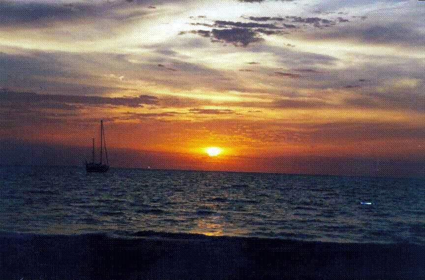 Ach to moře, ten písek, ty palmy… mám na jazyku toto známe pořekadlo. Ale taky to zapadající slunce, ty mušle a ostrůvky vystupující z moře. Najednou máme pocit jako bychom se ocitli v ráji a teď najednou nevíme co dělat. Člověk náhle cítí jakoby ubíhaly jeho poslední minuty života a musí toho stihnou strašně moc. Jak jen si vychutnat vše a nic nepromarnit. Koupat se , potápět, plavat k lodi v dáli, pozorovat zapadající slunce, procházet se jen tak jemným pískem, přeskakovat vlnky nebo jen tak koukat a nechat se ovívat teplounkým mořským vánkem. Tak tohle všechno bych chtěla dělat v tuhle chvíli. Odhazuji ručník a pomalounku se nořím do teplých vln Indického oceánu. To je balada. Neviditelné jemné mořské ruce jakoby hladily a uklidňovaly. Čas se zastavil. Jen to sluníčko ví, že to není pravda. Pomalu se ukládá do červenajících obláčků. Rudý kotouč mizí za obzorem a my se až teď pomalu probouzíme z mořské euforie a uvědomujeme si, že máme také přízemnější potřeby než je kochání se krásou ostrova a tou potřebou je jídlo. Je to k nevíře, ale najednou zjišťujeme,že máme obrovský hlad, který nás vyhání od moře. Žaludek nepřesvědčíte, že mu k jídlu stačí krásný pohled na překrásnou pláž. On je realista. Dobře ví, že on dneska viděl pouze jedny pálivé nudle a tenhle pohled mu určitě ke spokojenosti stačit nebude.
