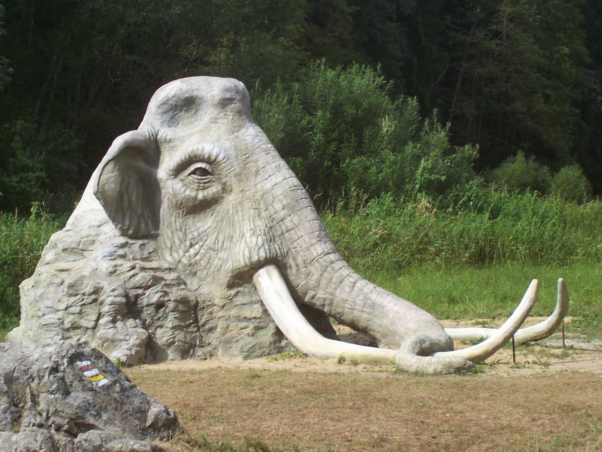 Od Hamroně jsem se rozhodla jít k další soše. Jedná se o Mamuta. Ten se nachází v lese u Rozštípené skály na druhém konci Hamrů. Cesta poklidnou malebnou obcí byla klidná a hezká, i když jsem šla většinou po silnici. Podle mého je mamut na nejhezčím místě. Je obklopen přírodou a hučící řekou a jsou u něj dvě lavičky. Každý, kdo k němu dorazí by měl nakouknout i na Rozštípenou skálu, která je oblíbeným místem pro horolezce.