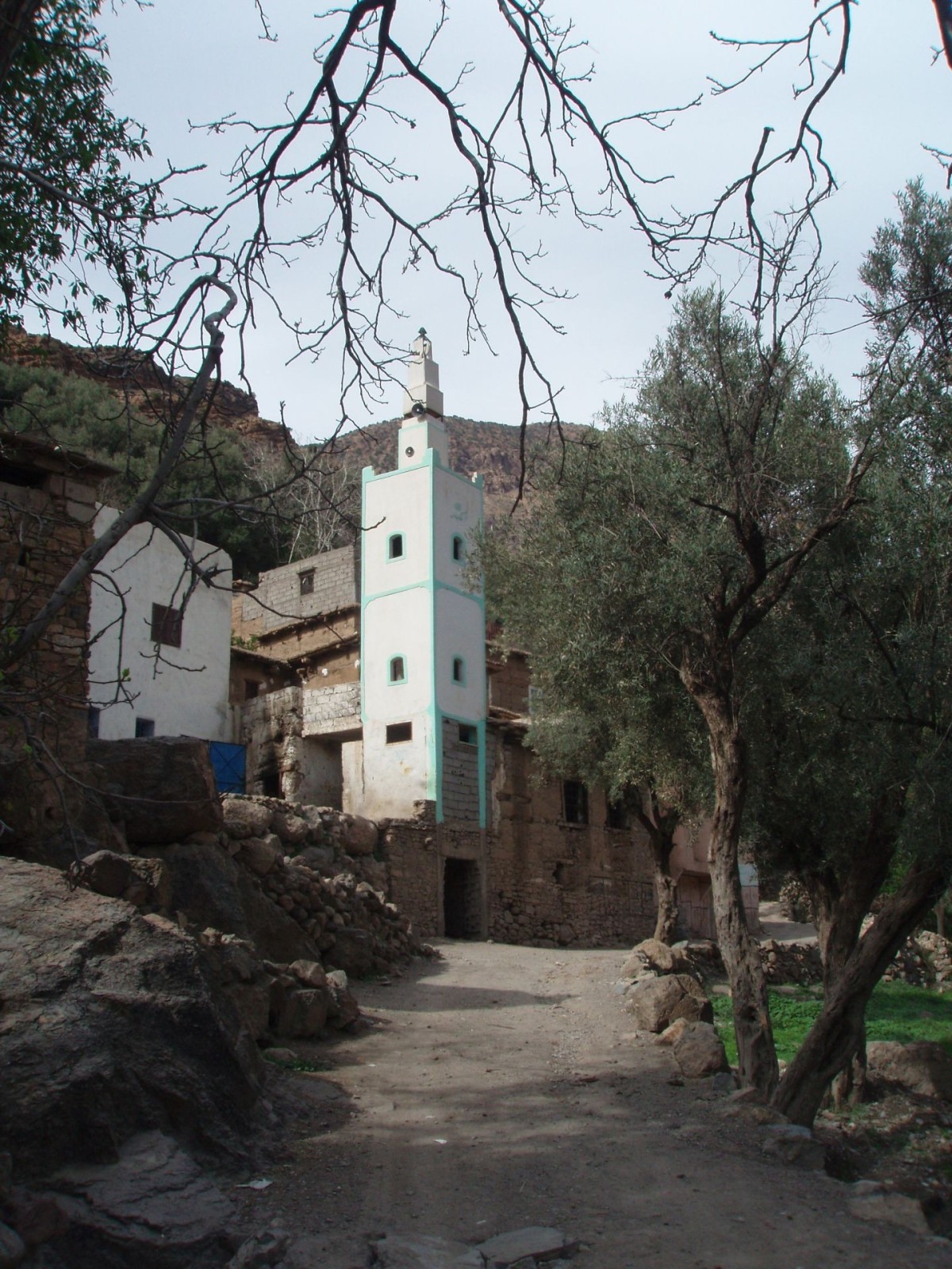 Ve třináct hodin a třicet minut pokračujeme po silnici přes další a další vesnice. Berberské vesničky jsou si celkem podobné. Domečky z dálky vypadají jako škatulky a mezi nimi vedou křivolaké uličky, které se stáčejí občas nahoru a hned zase příkře dolů. Domy mají jednoduché, ale přitom zajímavé, někdy i originální řešení fasády, různá okna, dveře, minibalkónky, omřížování a další prvky. Většina staveb je minimálně nebo vůbec udržována, některé detaily nejsou ani dokončeny. Takový je styl zdejší výstavby.