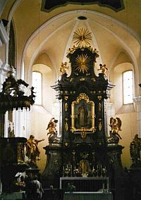 Naše první kroky vedly do kostel sv. Jakuba Většího, kde se zrovna uklízelo po (nebo před) nějaké akci a kam nám umožnili vstup s poměrně podrobnou prohlídkou. Kostel je jednou z dominant města a bývá také označován za zdejší nejstarší památku. Původní gotická stavba totiž zřejmě vznikla v I. polovině 13. století a svým způsobem byla součástí městského obranného systému. V 18. století byl kostel barokně přestavěn a převážně barokní je i jeho mobiliář (za zmínku stojí zejména dvě polychromované Platzerovy dřevořezby). Současná podoba kostela však vznikla až v roce 1869.