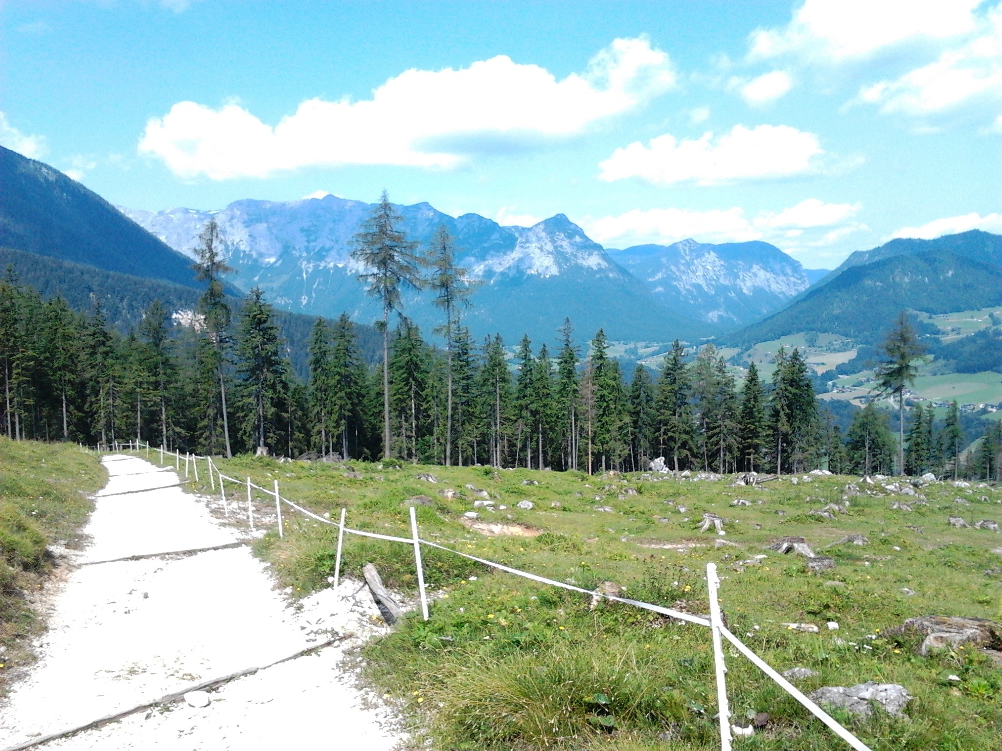Jelikož práce v Německu dává ve dnech volna i mnohé možnosti k cestování, snažím se toho využít, jak to jde. A tak jednoho krásného dne se s kolegy domlouvám, že se podíváme do okolí Berchtesgadenu. Jeden chce vidět Orlí hnízdo a druhý, stejně jako já, chce na nějakou horskou túru. Jelikož nás ovšem tlačí čas, já jsem po noční, takže příjezd se koná relativně pozdě a zase se musíme večer dostat zpět vlakem do Dingolfingu, nezbývá na samotnou pěší cestu mnoho času, proto volíme jen výstup k chatě Watzmannhaus. Ráno si kupujeme Bayern ticket pro tři osoby, tedy celý den cestování nás vyjde na 10€, a s přestupy v Landshutu a Freilassingu se dostáváme do Berchtesgadenu, centra tzv. Berchtesgadenské země (Berhctesgadener Land), kde se rozdělujeme. Kolega sedá do autobusu k parkovišti pod Orlím hnízdem a my nastupujeme do autobusu linky č. 460 Oberbayern busu, kde platí taky naše jízdenka směr Ramsau. Autobusy jezdí v časech předpokládaných příjezdů turistů i v půlhodinových intervalech a cesta k Wimbachbrücke, kde začíná turistická stezka na Watzmannhaus trvá asi 11 minut. Hned za mostem se nachází místní samoobslužné infocentrum, kde si můžete vzít letáčky ke zdejšímu národnímu parku i trase. Zde se ještě můžete rozhodnout mezi Watmannhausem nebo Wimbachklamm. Dále už nás směřuje ukazatel směr chata (4 hodiny). Cesta v podstatě od začátku dost strmě stoupá lesem, a zhruba po 1 a ¼ hodině chůze dojdeme k samotám a rozcestí Stubenalm. Pokud byste nechtěli pokračovat dále, dá se odtud sejít do Schöngau am Königsee. Kolem jsou Pastviny, kde se pasou krávy s typickými alpskými zvonci a koně. Chtěl jsem se zase jednou vyfotit s opravdovou krávou, ale kolegovi se tak nějak třásli ruce, takže na prvním smínku jsem bez hlavy a na druhém silně rozmazaný. Pokračujeme dále stoupáním lesní cestou, nejprve kolem dolní stanice nákladní lanové dráhy k Watzmannhaus a po několika stech metrech přicházíme k chatě Mitterkasenalm. Mají otevřeno, takže využívám tuto skutečnost k nákupu pohledu za lidových 50 centů (stejně jako v trafikách ve městech) a otisku turistického razítka do wanderbuchu. Před chatou je ještě žlab, s tekoucí nádherně studenou vodou, který využívám k zevnějšímu osvěžení. Stoupáme ještě asi 200 metrů až k meteorologické stanici, nad níž se cesta mění v kamenitou horskou stezku. Tak trochu vodítkem, kde právě jsme jsou nám tabulky, každých 100 výškových metrů, které nám udávají kolik nám ještě zbývá do cíle a jak vysoko jsme. Po překonání dalších 200 výškových metrů vycházíme na louku s horskou chatkou, která slouží (dle tabulek) jako nouzová noclehárna. Po letmém nakouknutí mi je jasné, že případní nocležníci v nouzi by patrně chatu sdíleli s všude kolem pasoucím se skotem. Cestou se kochám nádhernými výhledy, které jsou vlastně z každého průseku nebo každé louky kterou míjíme po celou cestu. Nad sebou už vidíme chatu, ale k jejímu zdolání je potřeba ještě mnoho sil. Sledujeme obdobu našeho červeného pásového značení, ale v trochu větším provedení. Konečně přicházíme na chatu. Cesta nám s přestávkami trvala zhruba 3 a ¼ hodiny a jelikož jsem byl po noční a s krosnou, kde jsem nesl čtyři 2 litrové láhve s pitím (kolega neměl batoh) mi dala docela zabrat. Útěchou budiž mi byl úlovek v podobě místního razítka a pohled, a pak sklenice oroseného vychlazeného piva, což v den kdy se i tady teploty pohybovali na 20°C, přišlo vhod. Seděl jsem a závistivě sledoval další turisty stoupající k, nebo se vracející z Hory Watzmann. Bohužel, čas byl neúprosný, za tři hodiny nám jede zase autobus do Berchtesgadenu. Od chaty je ještě možnost sejít ne Königsee, ale protože neznáme přesně odjezdy autobusů, a ani terén kudy bychom měli jít, radši to neriskujeme. Cesta zpět obvykle bývá jednodušší, nicméně o kamenité stezce minimálně k meteorologické stanici to neplatí. Jdu opravdu pomalu, nechtěl bych si tu přivodit vykloubení kotníku nebo něco podobného. I tak jsme zhruba za dvě hodiny dole u Wimbachbrücke. Autobusem nás pohodlně dovezl zpět do Berchtesgadenu, kde jsme se sešli s našim třetím kolegou. Místní infocentrum bohužel zavíralo už v 17 hodin, takže razítka se nekonala. Jelikož jsme tu byli začákem července, kdy v Německu ještě nejsou prázdniny, byl tu ještě relativní klid, dokonce i některé podniky měli ještě zavřeno. Ta pravá sezóna tu začíná až v srpnu. Nicméně budete-li mít cestu do Berchtesgadenu nebo alespoň kolem, určitě se tu zastavte a i když nebudete stoupat nikam do výšin, krásy zdejšího kraje stojí určitě za to.