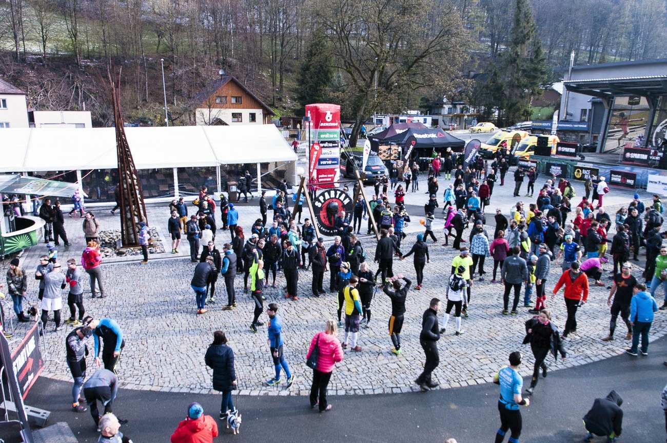 Spartan race je skutečně monstrózní akce. Původně to myslím vymysleli v Anglii a dnes se koná celá řada seriálů po celém světě. Závody dělají firmy, které na to mají licenci a nakonec i zařízení. Jeden ze závodů už po několikáté zamířil do Koutů nad Desnou, do zdejšího lyžařského areálu. Tuším, že už po třetí. Velké cross-coutry konané v sobotu, 29.4.2017 se odvíjelo kolem sjezdovek. Závodníků se sjelo z celé republiky (i zahraničí) spousta (tak zaplněné Koutecké parkoviště autor zatím nezažil). Takový závod není samozřejmě laciný, startovné se platí v částce něco přes 30Eur (pořadatelé jsou ze Slovenska). Hlavní závody startují z náměstíčka v areálu, první startují elitní muži, po čtvrthodině elitní ženy a pak po dalších 15 minutách další skupiny po cca 200–250 účastnících. Závodí se v jednotlivcích nebo v týmech. Podle skromných odhadů mělo startovat (nebo bylo přihlášených) asi 2.800 účastníků. Tedy skutečně nával.
