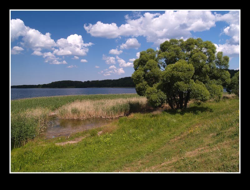 Jsa jazykově vybaven ještě z dob povinné školní docházky domlouvám „němnóžko pa rúski" celodenní zapůjčení člunu, přičemž nezapomínám zdůraznit (ostatně při všech rozhovorech s místními), že jsem „inostraněc iz Češskoj respubliky". Litevci mají k naší republice rozhodně vřelejší vztahy než ke svému velkému východnímu sousedu, čemuž odpovídá i výsledná cena zápůjčky, která dosahuje poloviční sazby z ceníku. Jídlo a pití na celý den, plná fotografická i filmová výbava - a už vyrážím vstříc vodám malebného jezera Lūšiai. Při plavbě kolem břehů si milovník přírody a fotograf přijde na své; malebná zákoutí s hejny divokých kačen, ukrývajících se v rákosí, kolonie vodního ptactva, ryby vyskakující nad hladinu i pravé nefalšované bobří hráze. Po objížďce jezera vplouvám do úžiny, spojující jezero Lūšiai s jezerem Asalnai, do níž z pravé strany vtéká potok Meira. Po obeplutí jezera Asalnai, na jehož severním břehu se v malebné zátoce Mėmio ragas nachází lesní tábořiště, se vracím do úžiny a proti toku potoka, protékajícího vesnicí Meironys hodlám pokračovat v objevné plavbě do dalšího jezera Dringykštis. Kvůli nízkému stavu vody v potoce a hlubokému ponoru mého plavidla však musím po několika marných pokusech chtě-nechtě vylézt z lodi a na laně jako burlak na Volze táhnout loď potokem. Ještě štěstí, že mám neoprenové sandále, jelikož dno potoka je doslova poseto prázdnými ulitami říčních škeblí. Co mi při proplouvání touto starou malebnou vesnicí vrtalo hlavou, byl účel dřevěných lávek s odkládacím pultíkem, vybudovaných na potoce u každého stavení. Začal jsem mít jasno v okamžiku, kdy sem zdomu došla stará „bábuška" s rancem nádobí, které začala v potoce umývat. Jako ve starém filmu jsem si připadal po dalších sto metrech, kde jiná žena pro změnu prala v potoce prádlo. Pokud to není pouze ukázka pro turisty a jedná se o odraz skutečného života v těchto osamocených starých vesničkách, pak není místním lidem co závidět.