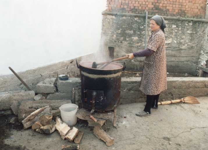 Koukáme, jak se dělaj povidla. Fotíme se. Kluci přespali též u místních. Dostali tam večerní i ranní dávku kořalky (část vzali s sebou), klobásu a sýr.