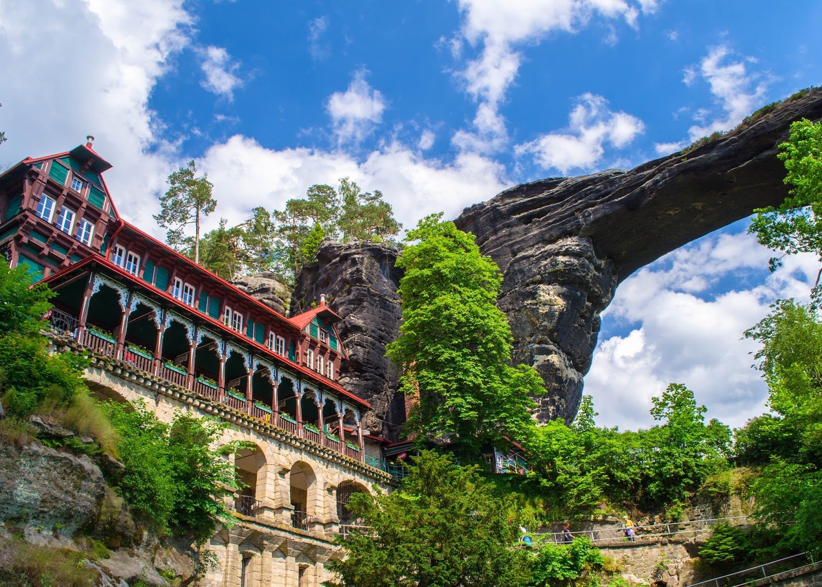Náš výlet jsme začali u hotelu Klepáč na okraji Hřenska. Vydali jsme se po silnici proti proudu Dlouhé Bělé až jsme došli na rozcestí Tři prameny. Můžete si vybrat, zda půjdete nejdříve k Pravčické bráně nebo na lodičky k soutěskám. My jsme se vydali po červené turistické značce, která vede okolo skal Českého Švýcarska. Prošli jsme Malý Pravčický kužel a nádherný les. Turisté podél cest často staví domky z kamenů. Lehce tak zabavíte děti, pokud se jim nebude chtít šlapat moc do kopce. Po výšlapu jsme se dostali k Pravčické bráně a k zámečku Sokolí hnízdo, jenž byl postaven pro významné hosty. Nyní se zde nachází hostinec a muzeum národního parku. Jen nezapomeňte si vzít hotovot. Nemají terminály na platební karty, takže byste se nedostali na pískovec, odkud je nádherný výhled na Pravčickou bránu. Nezapomeňte hotovost!!!