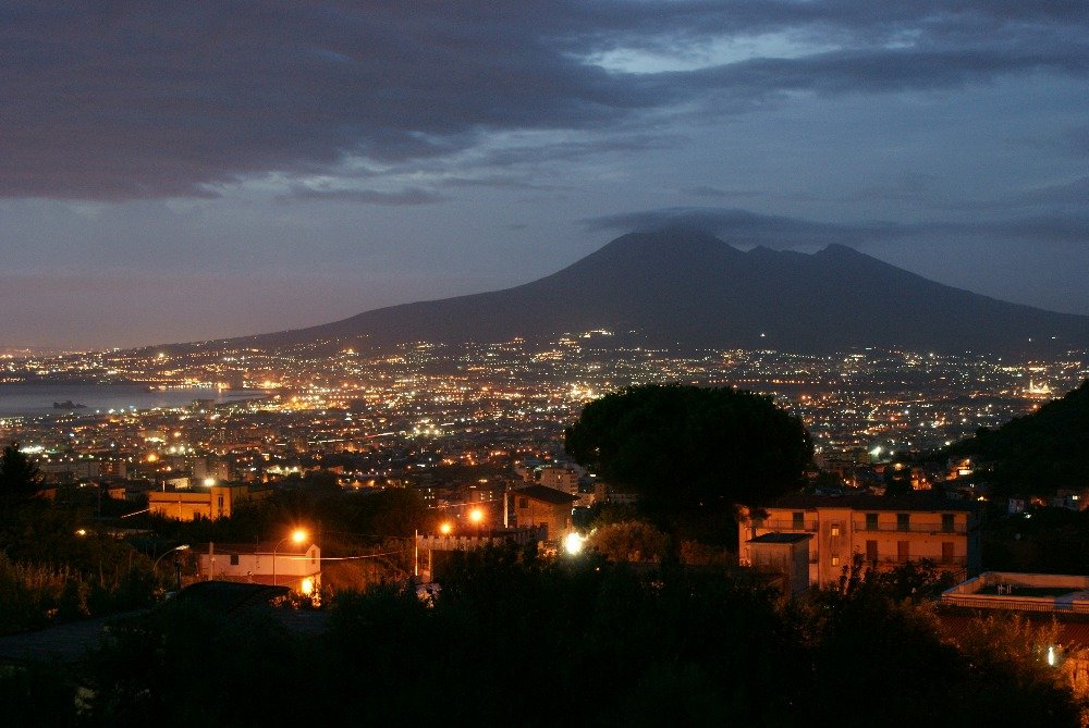 Naše cesta pak pokračuje do Caserty. Ozdobou města je barokní královský palác (Palazzo Reale), který je vlastně italskou obdobou zámku ve Versailles. zajímavostí je, že se v jeho interiérech točily, mj., scény z filmu Star Wars: Epizoda I - Temná Hrozba. K zámku přísluší anglický park s průzorem o délce 3 km a vodními kaskádami, vrcholícími fontánou bohyně Diany. Sice opět chybí sluníčko a modrá obloha (zrovna tady ovšem celkem hodně), ale když jsme byli ve Versailles, tak i pršelo. Více mě mrzí, že nedaleký tříposchoďový akvadukt není součástí „exkurze". Tím je denní program vyčerpán a odjíždíme se ubytovat. Hotel na „horním" předměstí Gragnana má sice 3*** hvězdičky, ale je přibližně na stejné (pro některé prý spíše horší) úrovni, jako, již popsané, Belmondo. Ovšem jeho poloha je úžasná. Kolem pohoří Monti Lattari a z pokojové terasy fantastický výhled na Neapolský záliv (přes Santa Maria La Carita, Torre Annunziate, Torre del Greco a další městské aglomerace až k Neapoli) a jedinou činnou sopku na evropské pevnině, tedy Monte Vesuvio - slavný Vesuv. Večer je už krásně, svítí hvězdy, cigárko, slivovička i pivečko na terásce chutná a o to více se těšíme na zítřejší program. Na slova průvodce, že jediný mrak na obloze vypadá bouřkově, si vzpomeneme až asi o půl 3 ráno, kdy nás vzbudí hromobití, doprovázející bouřku. A k tomu prší a prší …