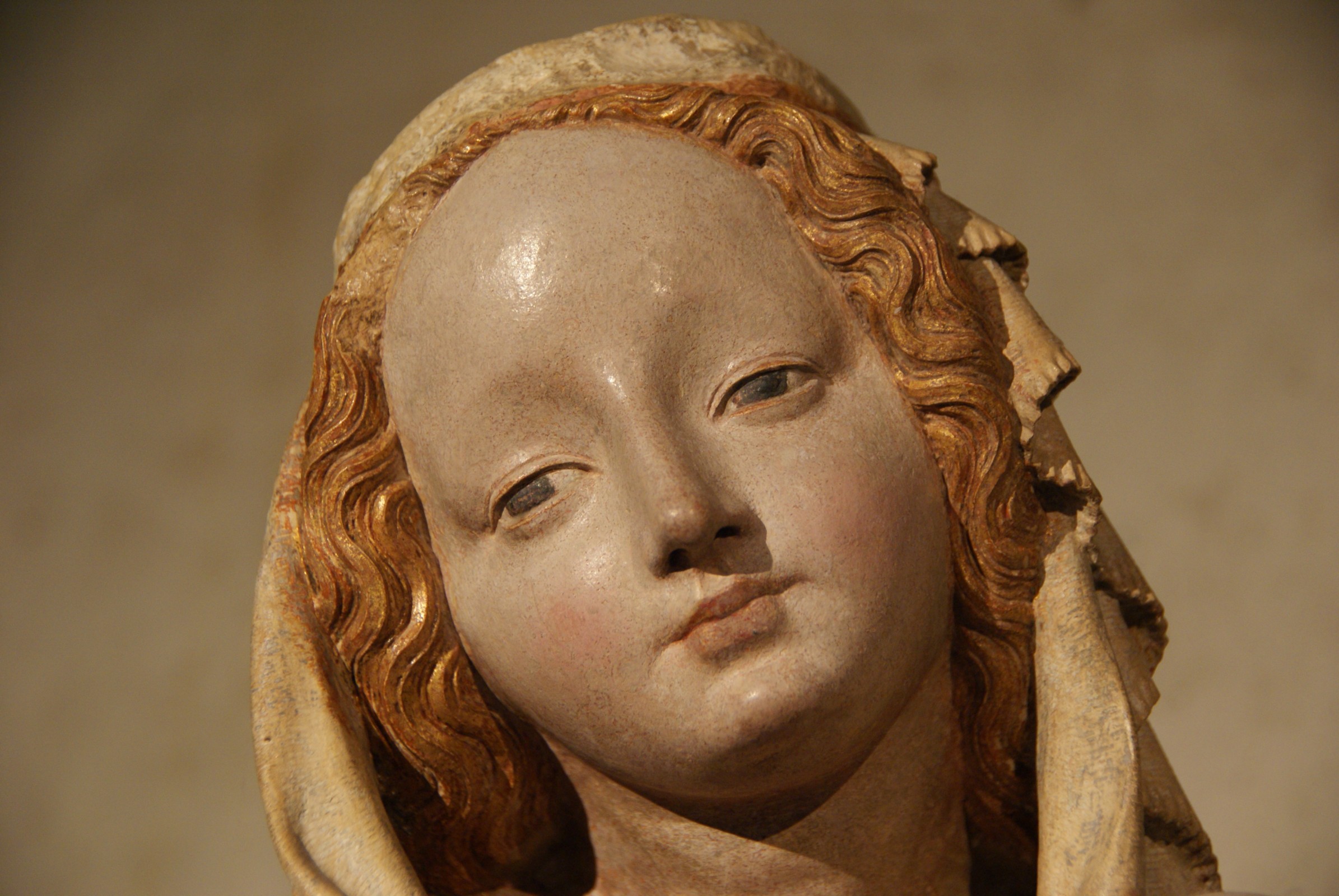 I druhá z „mých favoritek“ je navždy spojena s gotikou (i když už tou hodně pozdní až renesanční) a se slavným jménem nečeského původu. Jedná se o Madonu se zvířaty, tedy obraz z okruhu Albrechta Dürera (zřejmě od jeho následovníka), pocházející z období po roce 1503. Znalec umění vidí olej na lipovém dřevu o rozměrech 91 x 66,5 cm, stavitel hrázděný – a pro Německo typický – dům, hnidopich to, že těch zvířat tam moc není (v popředí nějaké ptactvo, v pozadí koně, při pozorném pátrání najdete i býka a opici) a snad každý, že je na obraze krásná holka s vlasy až pod … no, hodně dlouhými. Tento skvost se nachází hned v prvním sále muzejní obrazárny, přes který se návštěvník v závěru prohlídky vrací. Takže se mohu zdržet a kochat hned dvakrát. A kdo by se chtěl podívat na vzor tohoto obrazu, může se jet podívat do pařížského Louvru. V tomto případě skutečně platí, že modrá je dobrá.