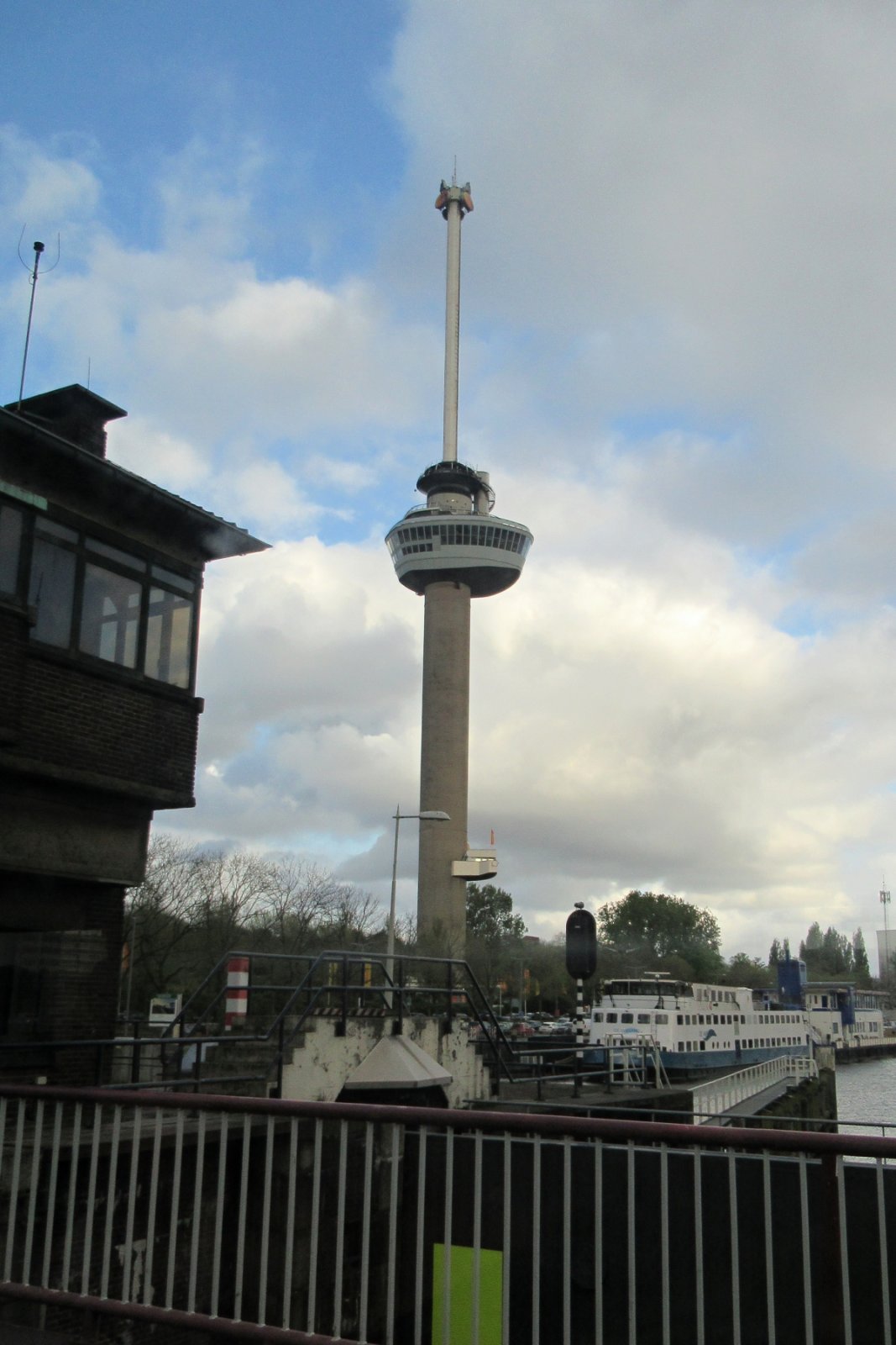Silnice jsou stále ucpané, je objjížďka, jedeme krokem. Skupina mající vstupenky na věž začíná mít obavy, aby to stačili. Dopadlo to dobře. V 18,59 vystupují těsně u věže Euromast. Je to nejvyšší vyhlídková věž v Nizozemsku a patří do městského panoramatu. Byla postavena v letech 1958 – 1960. Je to betonový tubus o průměru 9 m, stěny jsou 30 cm silné, který byl ve výšce 96 metrů ukončen vyhlídkovou terasou s restaurací, kam se dostanete pouze vnitřním výtahem. Aby věž byla při této své výšce stabilní, stojí na betonovém bloku o váze 1 900 000 kg. Tím bylo její těžiště přesunuto pod zem. Již tehdy to byla nejvyšší stavba ve městě. R. 1970 byla na vrchol přidělána 85 m vysoká štíhlá nástavba, okolo které se pohybuje výtah se skleněnou podlahou tak, že se točí okolo této věže a umožňuje tak vyhlídku na všechny strany. Tím se stala opět nejvyšší stavbou města.
