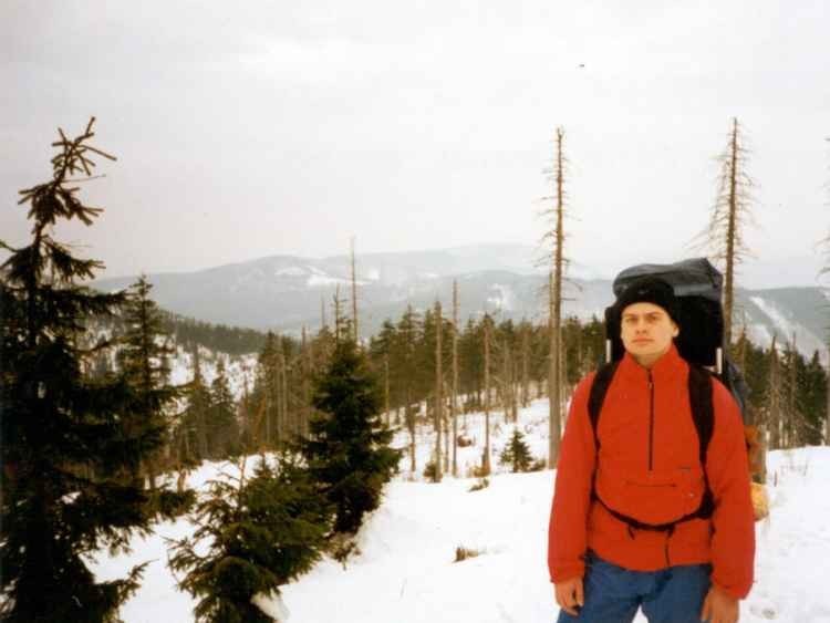 Začalo to asi tak, Já i Robert jsme měli celý víkend volný, rozhodli jsme se tedy, že si vyzkoušíme přespání v zimě na nějakém vrcholu Moravskoslezských Beskyd. Nejdříve byl navržen zalesněný vrchol bez chaty apod. „Smrk“ (1276,3m.n.m., druhý nejvyšší vrchol, po Lysé hoře, Moravskoslezských Beskyd), ale nakonec mi to Robert rozmluvil a zvolili jsme další variantu zalesněného vrcholu bez chaty a tím se stala „Kněhyně“ (1256,8m.n.m., třetí nejvyšší vrchol), jelikož Na Kněhyni ještě nebyl. Sraz jsme si dali u mě ve 13:00hod, je sobota 1.3.2003. Vydali jsme se tedy autem k úpatí Moravskoslezských Beskyd, konkrétně do obce Čeladná, jenž se stala naším výchozím bodem pro výstup. Cesta probíhala v poklidu a kolem 14:00hod. jsme byli na místě. Sálala z nás obou pozitivní energie pro poznání nepoznaného. Jaké to asi bude? Jaké bude na hoře počasí apod? Nicméně navlíkáme návleky, koukáme na rozcestník, který nám ukazuje, že na vrchol Kněhyně je to nějakých 6,5km. Ve 14:15hod. vyrážíme, auto zůstalo na parkovišti. Hned z kraje jsme tušili, že výstup nebude tak jednoduchý, odhadovali jsme, že je tak 40cm sněhu, který nebyl ani sypký, ani příliš těžký a mokrý. Venkovní teplotu dole jsme odhadovali něco klem nuly. K naší radosti, není příliš nepříznivé počasí, nefouká vítr….Naše batohy vážily kolem 12 kil, není divu, že jsme se začali ihned potit a postupně svlékat. Cestou na vrchol, po červené hřebenové turistické značce, jsme potkali celkem 6 lidí, shodou okolností samé páry. Kněhyně je zvláštní v tom, že není tolik obklopovaná turisty a i přesto nabízí krásný rozhled z vrcholu. Stoupání nám vcelku ubíhalo, čas letěl, a my dobře věděli, že do 17 hodin bychom měli být nejpozději na vrcholu, ať můžeme postavit stan ještě za světla. Povedlo se, i přes opravdu těžký terén, kde jsme se místy bořili po kolena, stanuli jsme na vrcholu v 16:45hod. Počasí bylo stabilní, akorát nahoře bylo už poněkud chladněji. Začali jsme tedy stavět stan. Postavili jsme jej hned u místní mohyly (památníku), který už je tam léta. U něj byl nejvhodnější prostor pro postavení stanu. Začali jsem si dělat večeři, oba jsme měli konzervy, a že nám taky pěkně vyhládlo. V mezi čase jsme udělali pár fotek, sdělovali si dojmy a koukali do údolí, kde začali krásně poblikávat světýlka z místních domovů. Robertovi to nedalo a hned po večeři začal vařit čaj, samozřejmě z tamního sněhu. Stále jsme však byli v očekávání, co nám přinese následující noc, jestli nám bude zima či nikoliv, zda se změní náhle počasí či ne….Po absolutním setmění jsme ulehli do stanu a já i Rob si četli. Vydrželo nám to asi 45 minut a vzalo nás spaní. Usnuli jsme něco kolem 19:00hod. Noc probíhala v klidu, bylo téměř bezvětří, teplota klesla počítám tak o 5 stupňů. Já spal ve spacáku tvaru „mumie“ od firmy „ROCK EMPIRE“, kde extrém tvoří teplota –15 stupňů. Rozhodl jsem se i přesto do něj vlézt svým klasickým a osvědčeným způsobem a to jen v trenýrkách, na nohách jsem měl teplé podkolenky, svrchní část tvořil pletený svetr. Rob měl spacáky dva, jejichž extrémní teplota dosahovala 0 stupňů. Spal ve spodkách a ve fleecocé bundě. Musím přiznat, že jsem se několikrát za noc probudil a to proto, že nerovnost terénu, na které jsme spali, mi způsobovala otlaky a ty mě probouzely. Hodně vše taky ovlivňovala karimatka (já měl jednovrstvou a Robert měl dvouvrstvou), pokud z ní člověk jen trochu sjel, bylo zle a šel cítit velký chlad od země… Probudil jsem se asi v 7:30 hodin, Rob postupně také…sdělovali jsme si dojmy z našeho vytouženého cílu. Vůbec se nám nechtělo ze spacáku, není divu, ráno bylo opravdu chladné. Následovala snídaně a opět vaření čaje na ráno a na sestup dolů. Počasí bylo stabilní, téměř bez větru, jen byla velká mlha, nešlo téměř nic vidět. Všude kolem šlo vidět trochu připadaného nového sněhu. Robert našel onu vytouženou vrcholovou kroniku, o které jsem mu vyprávěl, když jsem v roce 1995 Kněhyni navštívil, byla tam už tehdy zavedená. Našel ji schovanou a zabalenou v několika igelitových sáčcích pod pomníkem. Byla stará z roku 2001. Neváhali jsme a napsali jsem i my nějaký ten příspěvek a dojem. Sbalili jsme stan, všechny své věci a alou dolů. Cesta ubíhala vcelku rychle a v 9:15hod. jsme byli u auta. Cesta domů netrvala dlouho a já už v 10:15hod vychutnával teplou vodu ve vaně. Závěrem bych pronesl asi toto: „Je skvělé si vyzkoušet i tento extrém, který nám hodně dal a přinesl a my si dokázali něco, o čem jsme už dlouho jen mluvili…..“