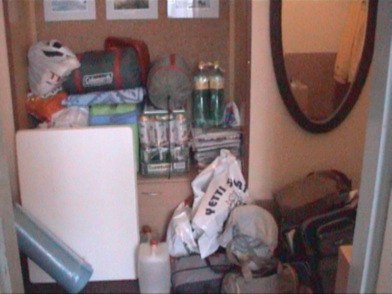 „No, co by, dojedeme do Hasel, nebo jak se to jmenuje a nakoupíme. Věci si tu můžeme klidně nechat. Za prvé tu nikdo není a za druhé, kdyby sem náhodou někdo přišel, nic nám nesebere, tady se to prostě nedělá.", reaguje muž na mé úvahy.