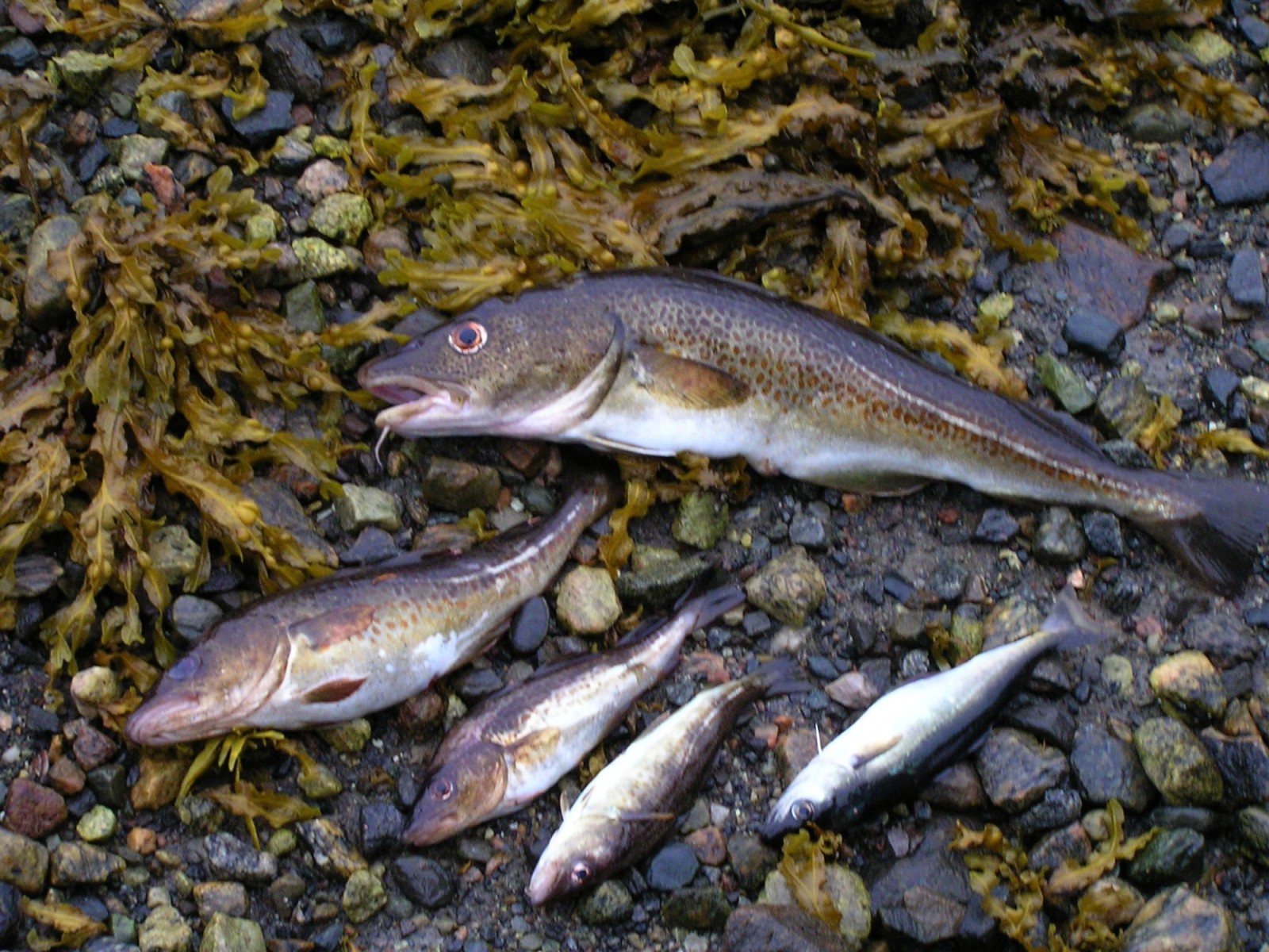 Chytáme dál. Táta už chytil dvě tresky a já ? Rybu žádnou, ale za to už mám aspoň desátého slimáka. Dáváme ho na kraj vody a pozorujeme. Asi po dvou hodinách se slimák roztáhl a „odcházel" hlouběji do vody. Tvarem i barvou vypadá přesně jako lejno. Vlastně jsem dnešní závody v lovu vyhrála, mám deset kousků a táta jen dva.