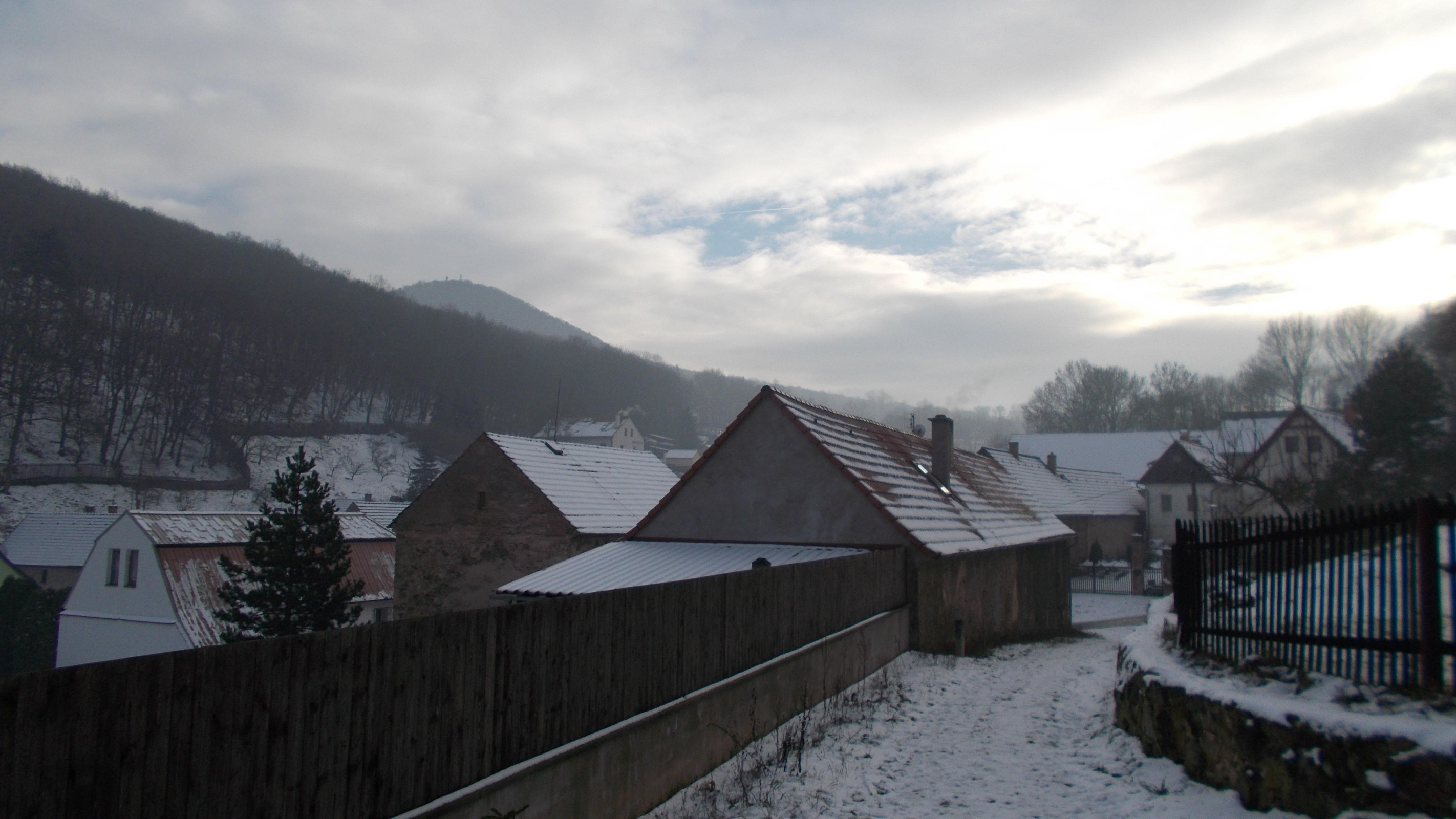 Cestu dolů jsme už zvládli bez úhony, ještě jsme se zastavili na hájovně poblahopřát rodině mého kolegy včelaře. Nějak nám ale zbývalo docela dost času do setmění, takže se mi v hlavě začali honit myšlenky, kam by jsme ještě vyrazili. Při pohledu na zapadající slunce mě napadlo zajít na Opárenský hrádek nafotit první západ této životadárné hvězdy roku 2015. Ovšem tento nápad vzal při cestě tam rychle za své. Kousek u hrádku jsem totiž s Rinou potkal známého z ,,šotoušské branže“ a už to jelo, podělili jsme se s novými železničními zážitky, a jak jsme tak povídali a povídali, sluníčko se pomalu zakutálelo za kopečky. Velkou hlavu jsem si s toho ale nedělal, někdy příště to doufám vyjde, času na tomhle světě mám snad ještě dost, občas si takto ,,pokecat" se známými a ještě na čerstvém vzduchu, to opravdu neuškodí.
