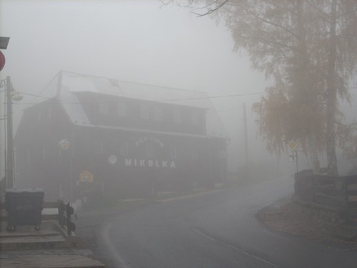 Poznávat nová místa,která ještě neznám, je pro mě takovým tajemstvím.Ale že to bude doslova a do písmene v malinkaté obci Mikulov,toho jsem se vskutku nenadála.Přijeli jsme do Mikulova autobusem a již po cestě,jak jsme se blížili k místu se začalo šeřit a tmět víc a víc a nakonec jsme vystoupili do tak husté mlhy,že by se dala doslova krájet.Tak a co teď?Rozhlídli jsme se okolo, nikde ani človíčka,docela to bylo strašidelné…jen se podívejte na fotky….