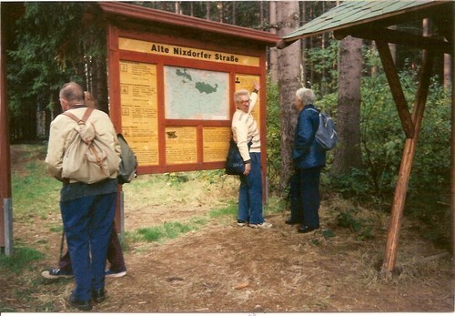 Hranice jsme překročili v Doubicích okolo německého patníku.Tehdy jsme šli po červené značce, nevím jak je to značeno dnes.Šli jsme dost úzkou stezkou,která nás zavedla přímo k Obere Schleuse.