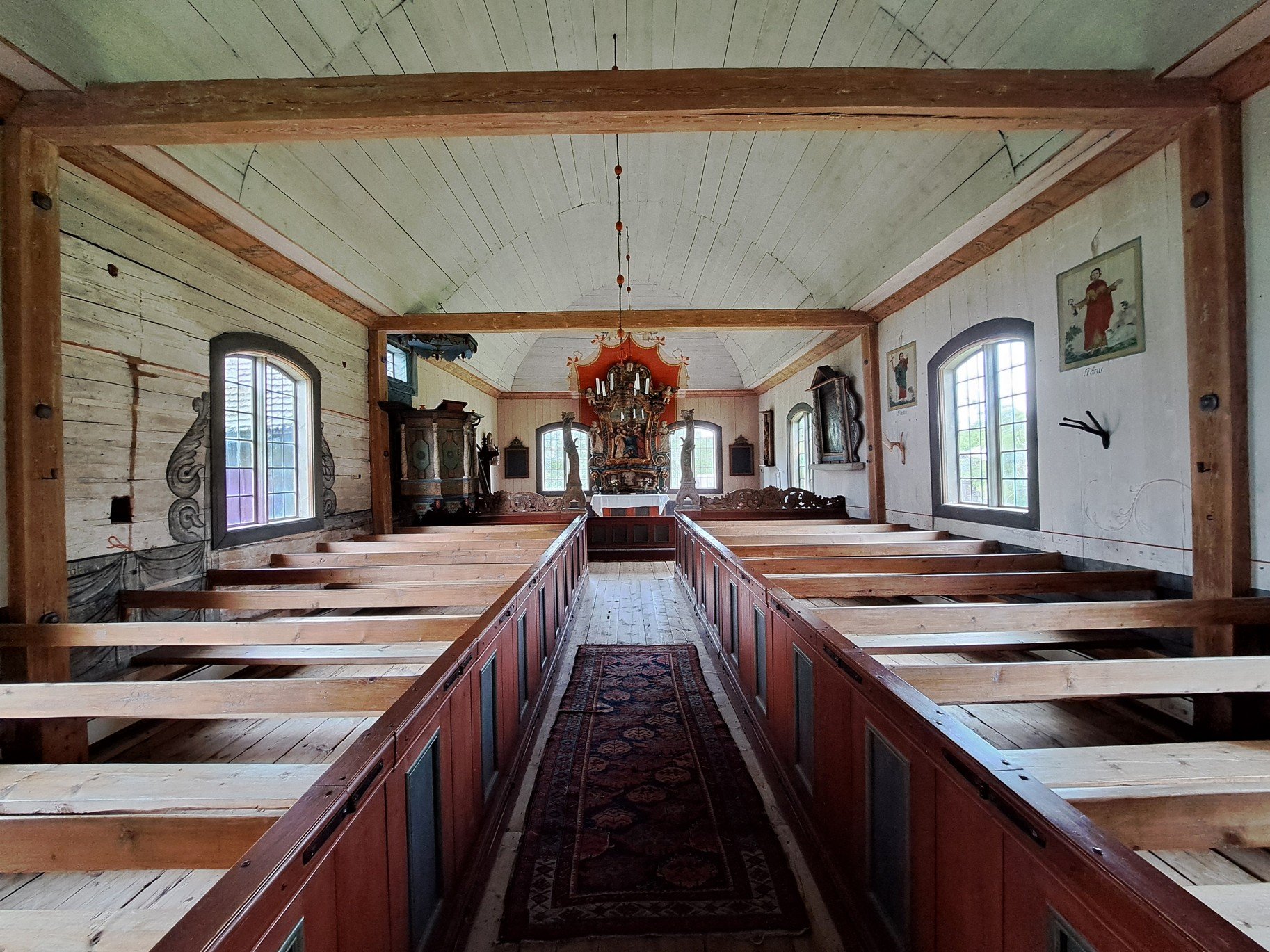 Särna Gammelkyrka je ale tak trochu schován před návštěvníky městečka. My jsme ho naštěstí objevili a stavba si na první dobrou získala naše uznání a obdiv.