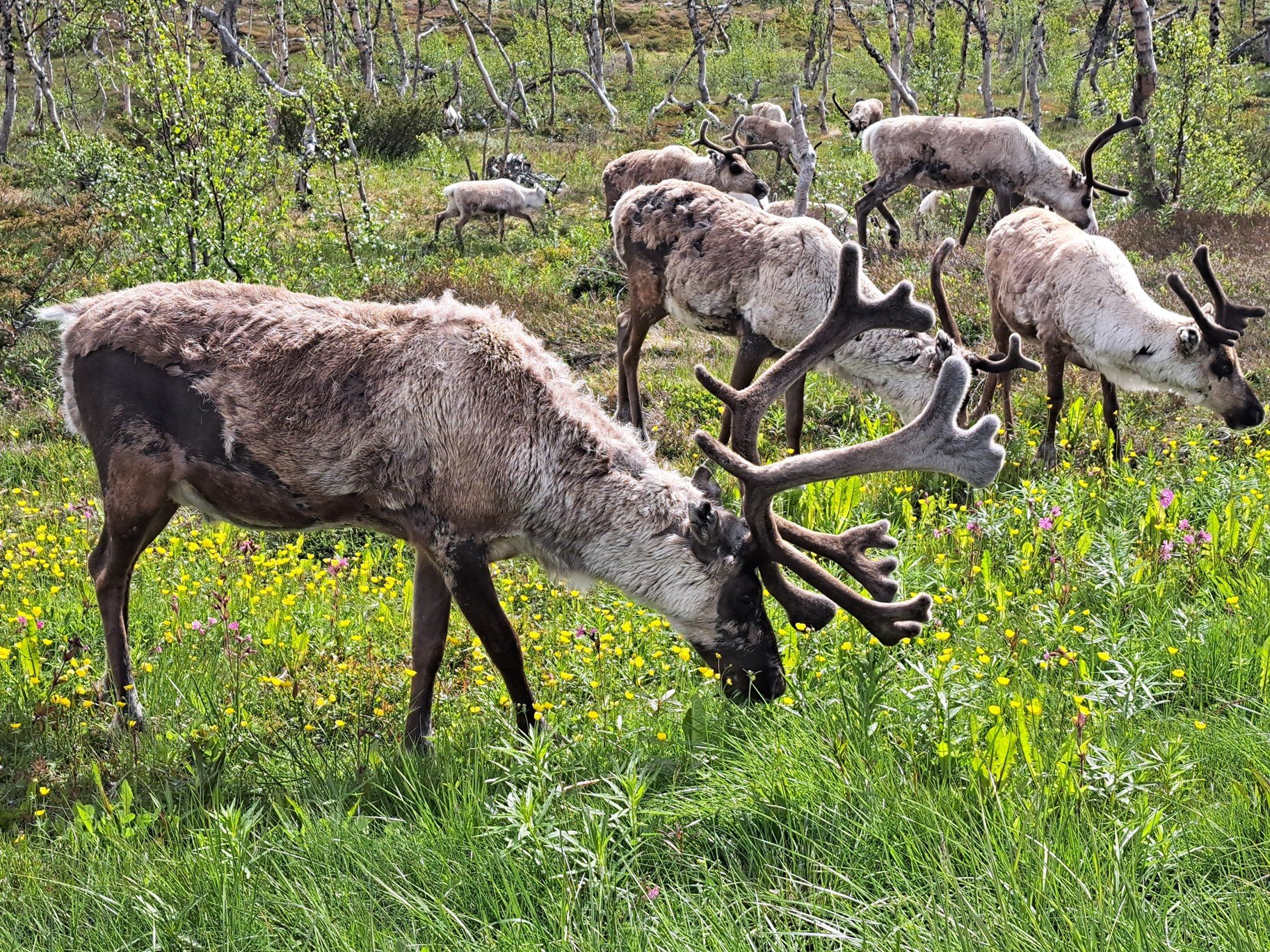 Zvláštní kapitolou našeho putování je setkání se zvířaty. Nemyslím tím veverku, kachnu či racka, ale nejznámějšího obyvatele Laponska, který není z lidské, nýbrž z jelení říše.
