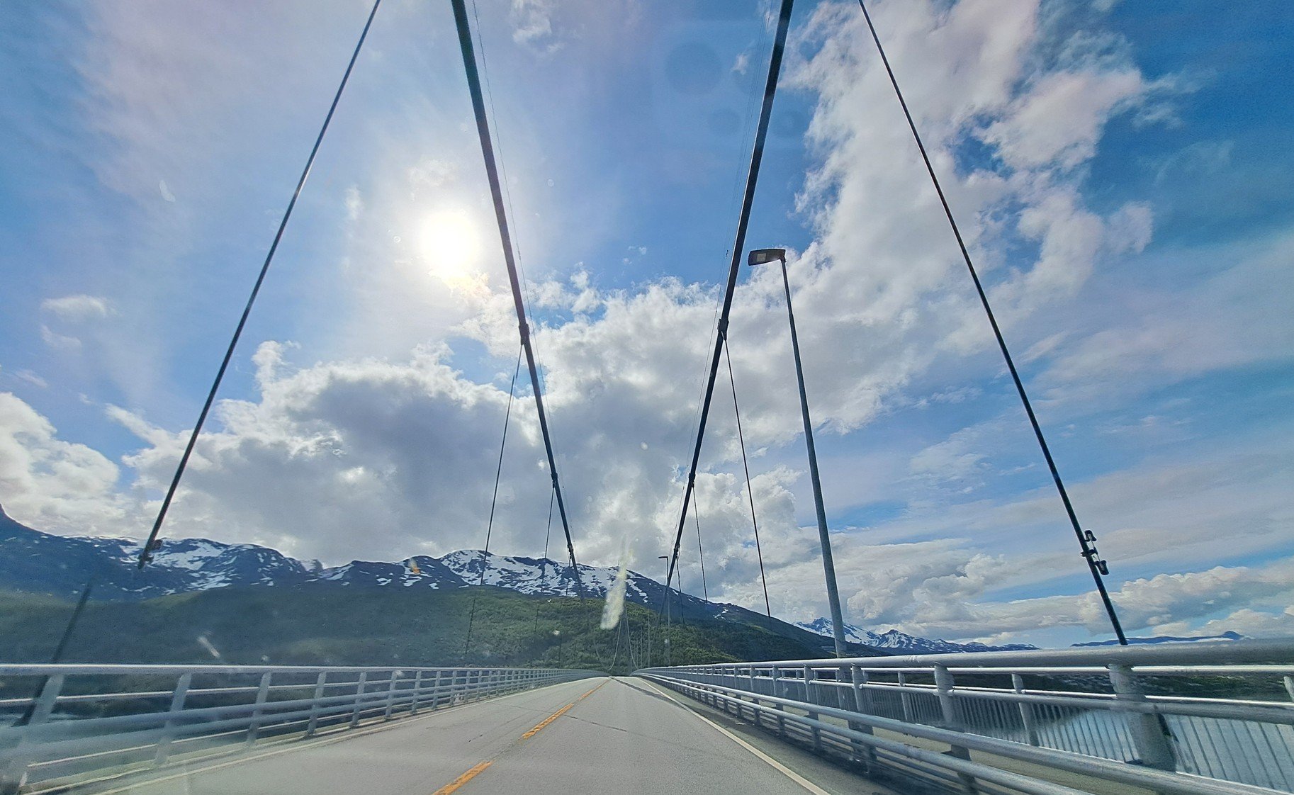 Před městem Narvik je visutý most Hålogaland, který vede přes Rombaksfjorden.