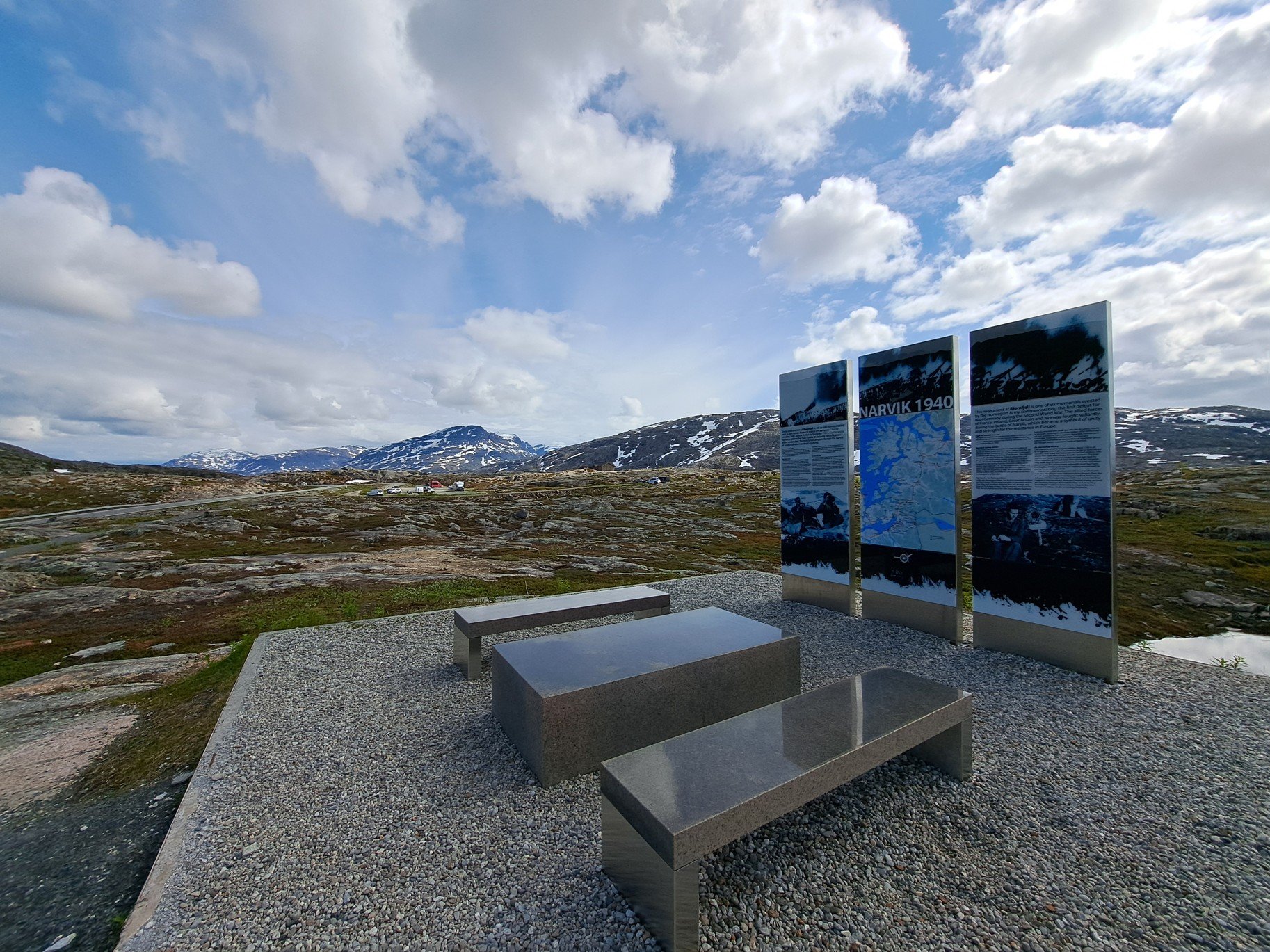 Jihozápadně od města Bjerkvik objevujeme pomník s názvem Narvik 1940. Připomíná důležitého okamžiku v dějinách země během druhé světové války. Bitva o Narvik byla během druhé světové války sérií pozemních a námořních vojenských střetnutí.  autor: Bubinga