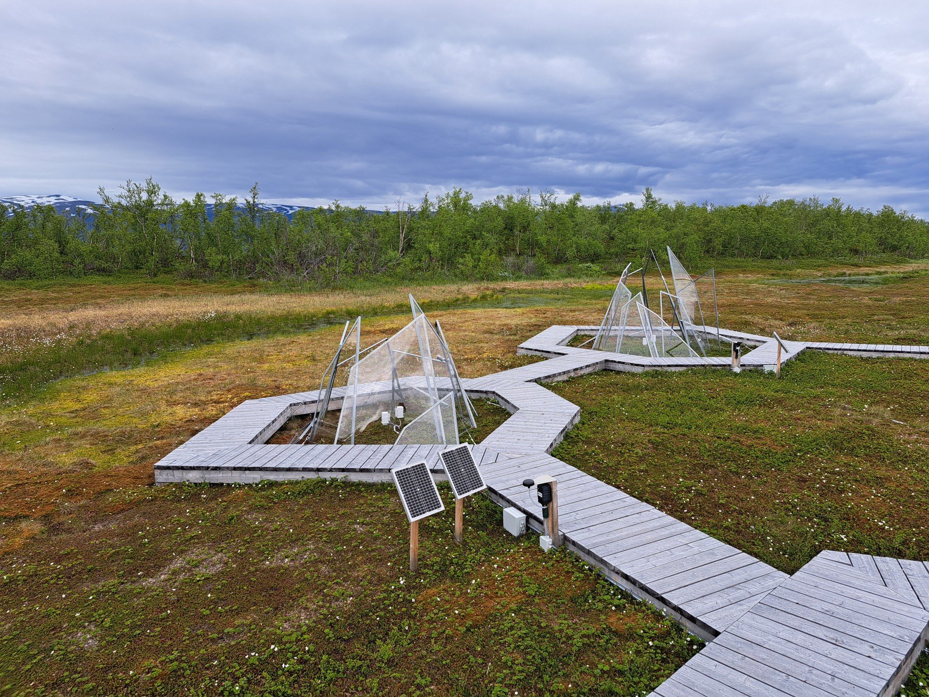 Sensing the Arctic je zajímavá instalace umístěná na permafrostovém bažině poblíž obce Abisko. Jedná se o společný projekt umělců a Centra pro výzkum dopadů klimatu ve spolupráci s Naturum Abisko a Švédskou turistickou asociací.  autor: Bubinga