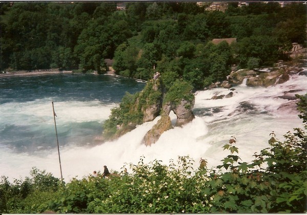 Další zastávka byla u Rýnských vodopádů.Vody Rýna padaly asi z 20 metrů výšky a dělaly obrovský hluk, že pomalu nebylo slyšet ani vlastního slova. A byla atrakce – mohli se někteří odvážlivci projet po loďce a proplout o kus dál pod vodopády. Já tu odvahu neměla, když jsem viděla bouřící se a vzdouvající vlny a jejich hukot……dělalo se mě až zle,že bych tam někde ve vodě měla plout….Ovšem podívaná to byla úchvatná! Jsou to největší vodopády takovéhoto druhu v Evropě.