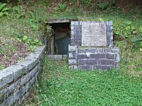 Nahoře byla před vchodem do bunkru umístěna další pamětní deska s vystupujícím, leč již zcela nezřetelným textem. Ten jsem si ale přečetl na vedlejší informační tabuli. Pietní místo je doplněno zastřešeným obdélným odpočinkovým altánem s dlouhým stolem a lavicemi.