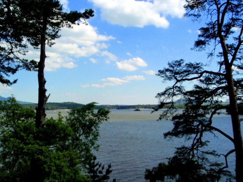 Vyrazili jsme opět vlakem z České Lípy do Doks. Vlak byl plný po vodě dychtících lidí, prázdniny byly v plném proudu, počasí přímo ukázkově letní, takže se vůbec nebylo co divit. Přešli jsme lávku nad nádražím, z které se naskýtá nevšední pohled na Bezděz, ocitli jsme se na cestě vedoucí k hlavní pláži, vyhnuli jsme se stánkům vietnamských obchodníků a za nedlouho jsme se ocitli na další lávce, přetínající zátoku pod Klůčkem. Chvíli jsme se zdrželi krmením kachen, než jsme mohli pokračovat. Mírným svahem nad pláži Klůček jsme se dostali do borového porostu, tu a tam se nám zdařilo nasbírat pár borůvek. Podle pověsti právě někde v těchto místech, na skále nad jezerem, stávalo vězení, v kterém čekal na popravu hrdina Máchova Máje, loupežník Vilém. Dnes by mu ve výhledu na " širou to zemi" bránili vzrostlé stromy.