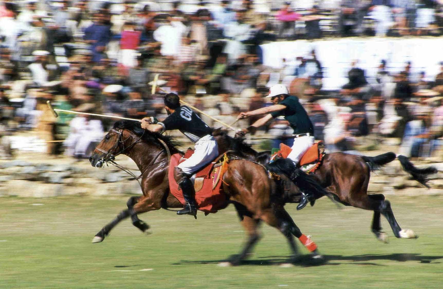 KŠandurskému průsmyku se valí další a další zástupy lidí. Během několika málo dní vtéto jinak skoro vylidněné krajině vyrostlo město ze stanů, jehož populaci jeden starousedlík odhaduje na deset tisíc přivandrovalců. SŠamimem, mým novým známým, se snažíme najít levné ubytování, což se zdá být nad lidské síly. Místní podnikavci totiž vyšroubovali ceny do závratných výšin; za zastřešené místo ke spaní žádají až dvacet dolarů za noc, na pákistánské poměry nehoráznou sumu. Důvod je jediný - pólový turnaj elitních týmů severu Pákistánu se koná jen jednou za rok a vidět ho chce asi každý. Ne všichni ale vlastní stan a spát vnadmořské výšce 3810 m pod širákem může být riskováním se životem. Nakonec se za rozumnou cenu zabydlujeme vděravém stanu, kde už se vedle sebe tísní dvanáct lidí. Dva naši spolubydlící kvůli turnaji jeli dva tisíce kilometrů až zKaráčí.