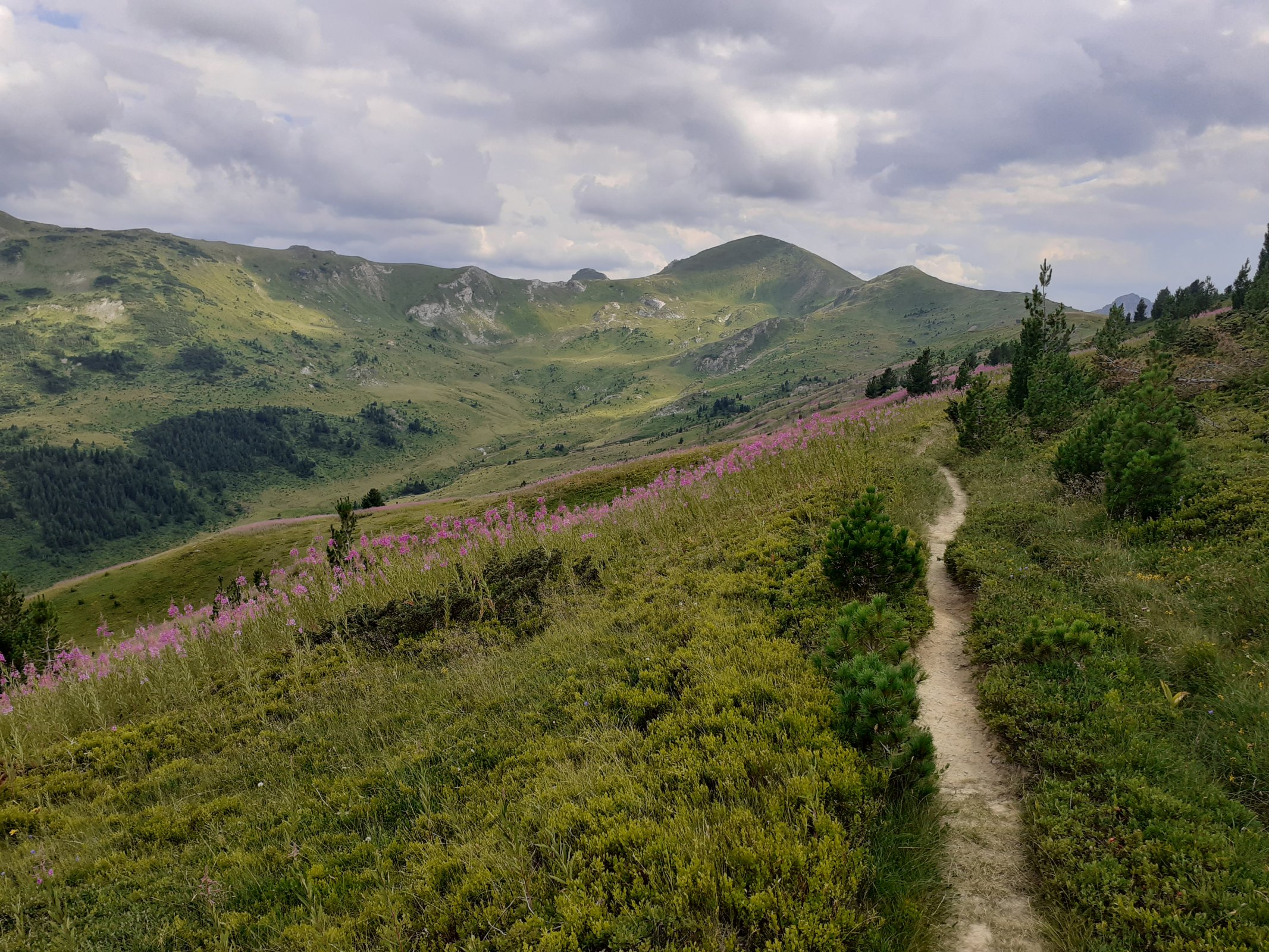Pohybujeme se ve výškách okolo 2000 m n. m., místo na spaní se tu hledá poměrně těžko. Nakonec vybíráme planinku alespoň částečně krytou skálou kousek vedle cesty. Stejně jsme v těch horách téměř sami.