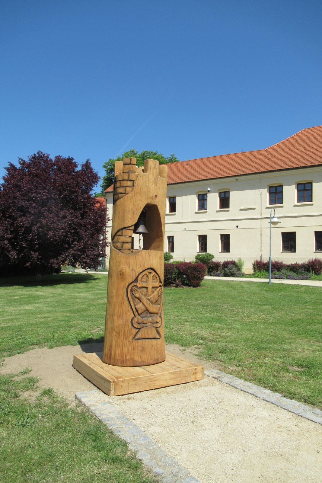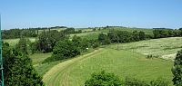 Zastavujeme se tam jen na chvilku, aby si Ota koupil na večer pivo - aby se mu stačilo vychladit. Ještě mi chce ukázat klášterní terasy. Ty jsem neměla v itineráři, protože jsem o nich nevěděla a Ota si vzpomněl až večer, že jsme tam nezašli. Je to tu sice hezky upravené, jen mne překvapilo, že tu nemají žádnou možnost posezení. Je vidět zalesněné údolí Mže a Křížový vrch, kde jsme včera byli. Já si ještě ve městě koupila bezé roládu, abych si ji dala ke kávě, kterou jsem proto ráno neměla.