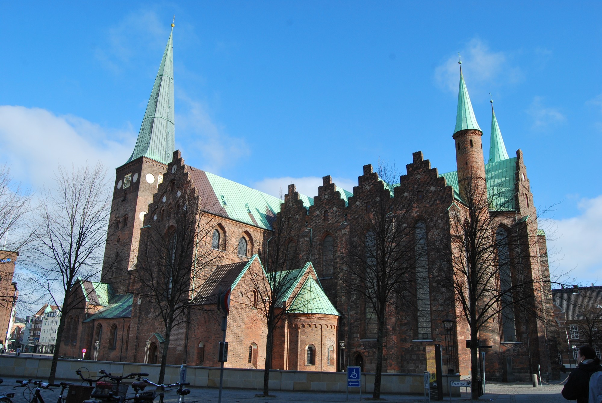 Prohlídku města začínáme právě v přístavu, kde jsme zaparkovali. Odtud se vydáváme do centra města ke kostelu, který je po ránu zavřený. Prošli jsem si náměstí a přešli k umělecké galerii. Zvláštní budova kruhového tvaru. Zhruba o půl kilometru odtud se nachází skanzen se starými domy. Boužel otevřeno bylo až od 10, my ta byli už v 9. takže jsme zklamaně odkráčeli zpátky na náměstí. Zde jsme se optali ochotného pána, kde se nachází vikingské muzeum, o které jsem se zajímala nejvíc. To se nachází v suterénu jedné z místních bank. Pán nás nasměroval na nejbližší banku, kde přišlo další zklamání - zavřeno o víkendech. Naštvaně jsme se chvíli courali po náměstí a okolních uličkách, aby jsme si zkrátili čas do odjezdu. Pak následoval přejezd do města Aalborg.
