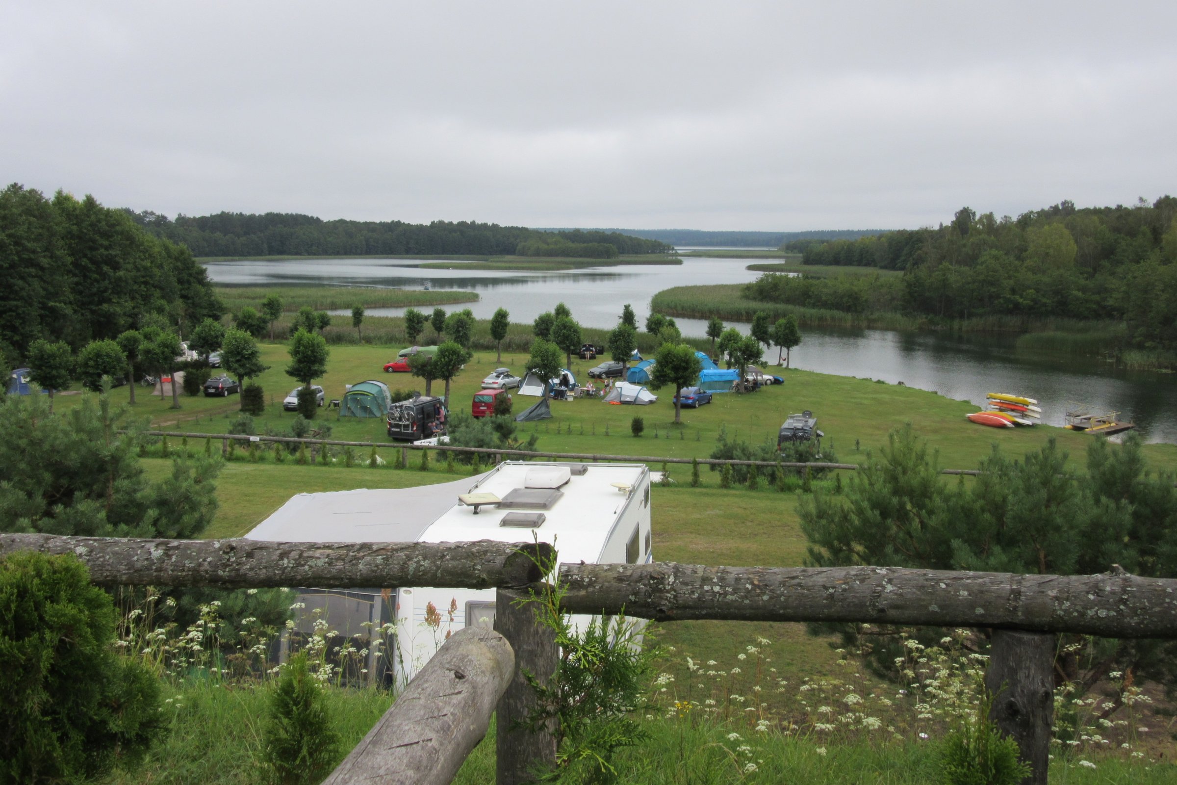 Po procházce nás na konci Bryzgielu vyzvedne autobus a pokračujeme do kempu Królowa Woda nedaleko města Augustów, což je správní město celé oblasti. Ubytujeme se v chatkách a jdeme prozkoumat okolí, které zahrnuje i kempovou pláž u jezera Sajno s hejnem kachen na jeho písčitém břehu. Pokud bychom chtěli prozkoumat jezero, jsou zde k zapůjčení šlapadla. Této možnosti ale vzhledem k zatažené obloze a občasné přeháňce nevyužijeme.