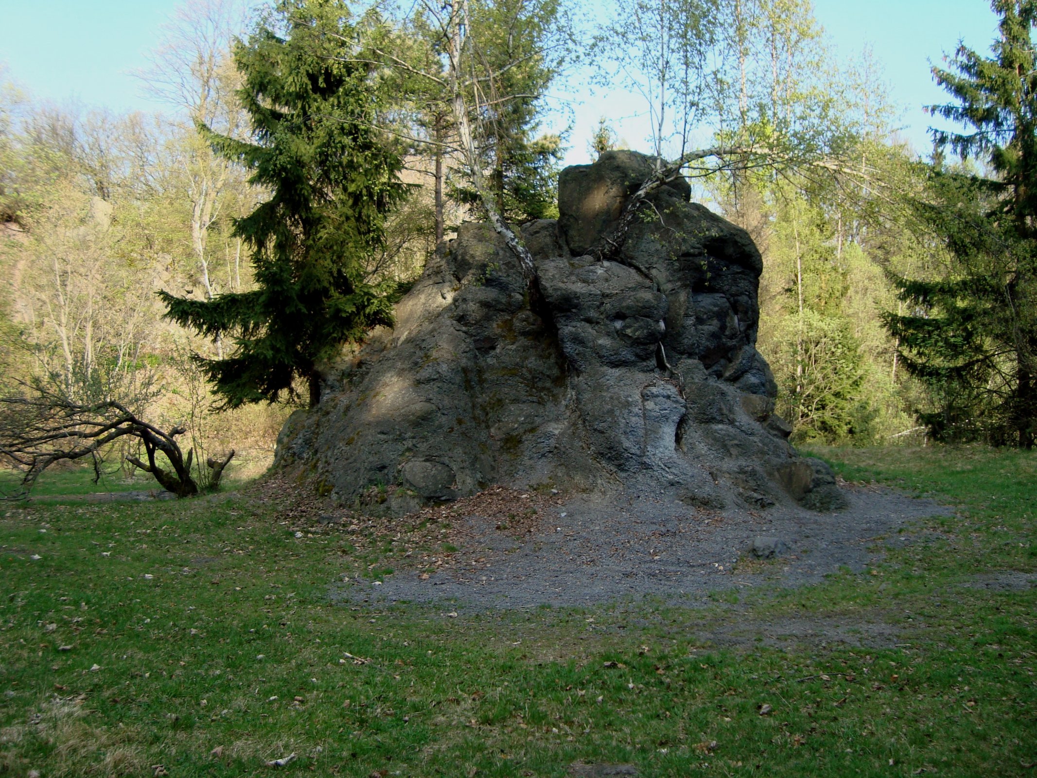 Červená hora-kráter stratovulkánu, bývalý lom Velká sopka a zbytek lávy uprostřed