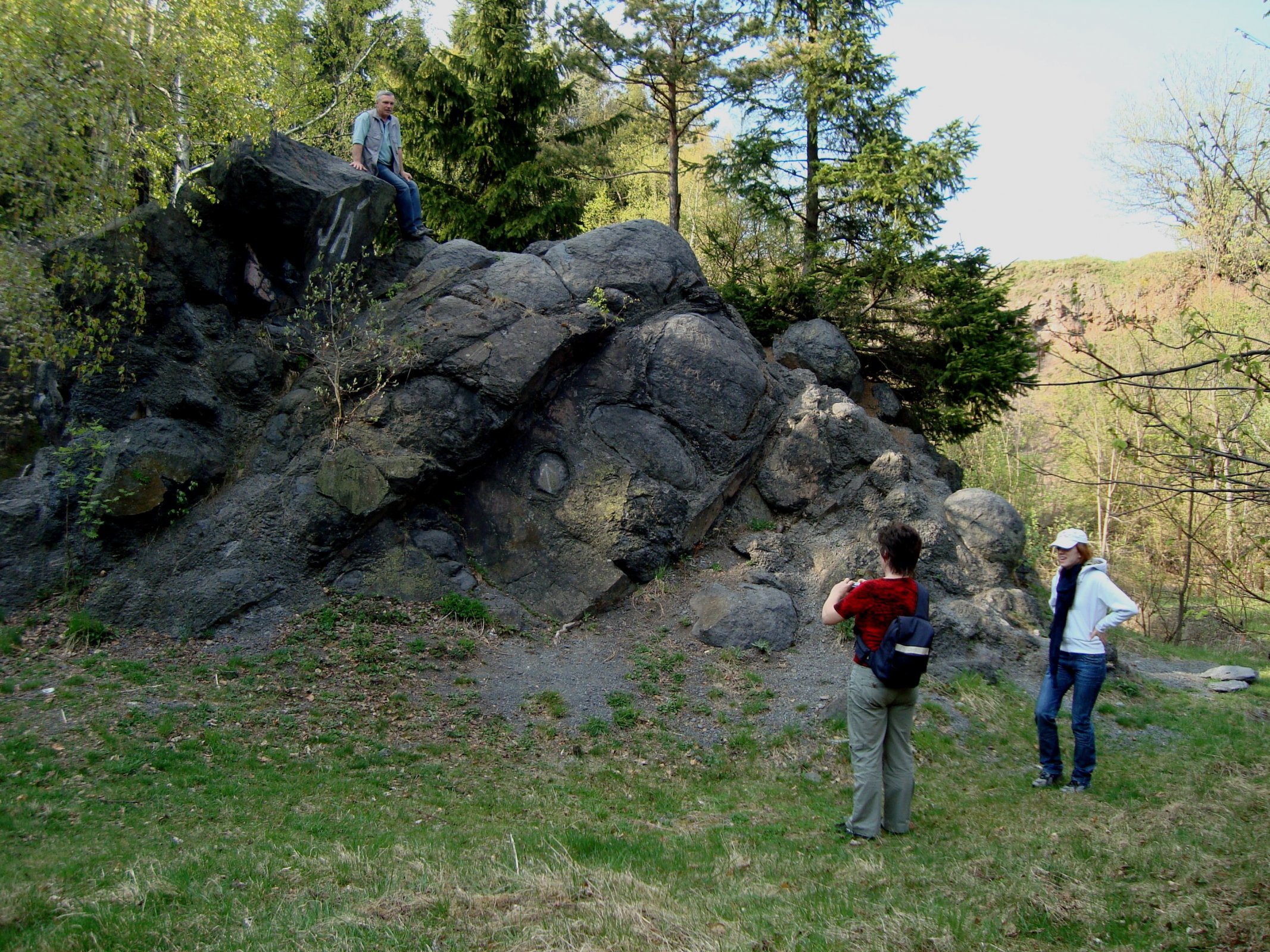 Červená hora-kráter stratovulkánu, bývalý lom Velká sopka a zbytek lávy uprostřed