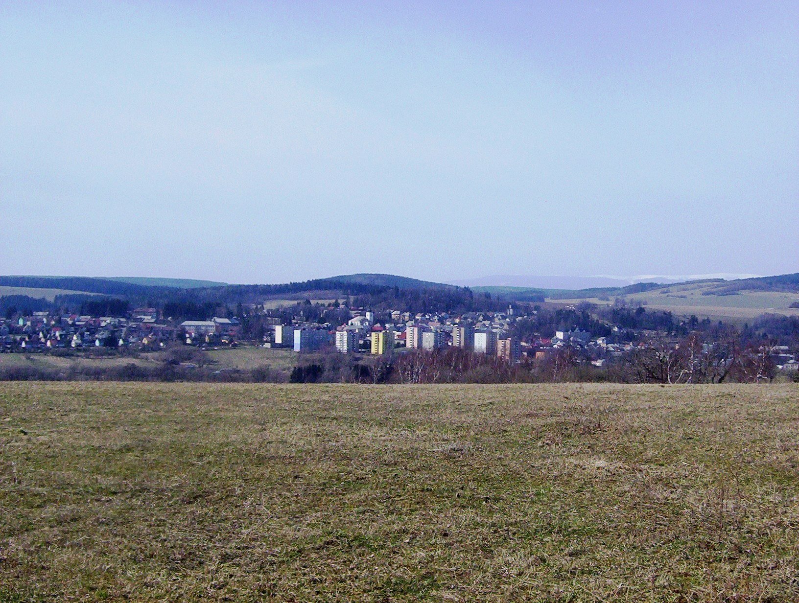 Moravský Beroun od Hraničních Petrovic, v pozadí Slunečná(800 m), Malý(771 m) a Velký Roudný(780 m)