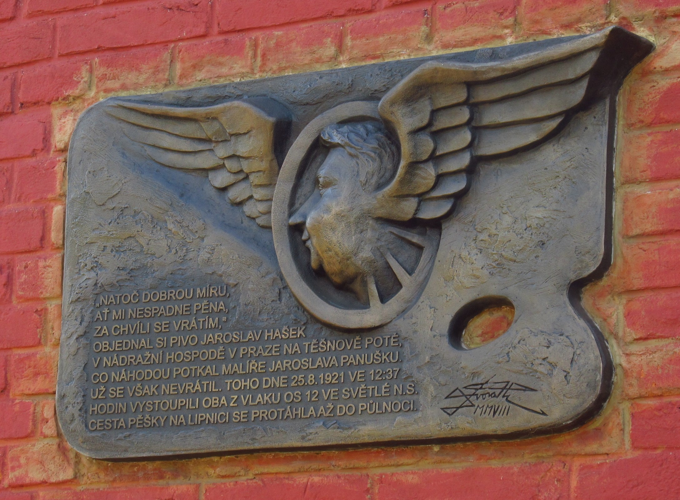 Pak na náměstí kolem sochy J.Haška k restauraci U České koruny kde jsem hodlal osvěžit organizmus jedním pivem, bohužel jsem tu příliš brzy, je teprve po desáté hodině. Pokračuju dál a na spodním konci náměstí narážím na rozcestníky k Památníku národního odposlechu, dalšímu cíli mého dnešního výletu. Tedy ony ty cile jsou už tři, Bretschneiderovo ucho, Ústa pravdy a Zlatý voči. Sochařské výtvory sochaře Radomíra Dvořáka v nedalekých zatopených malých lomech.