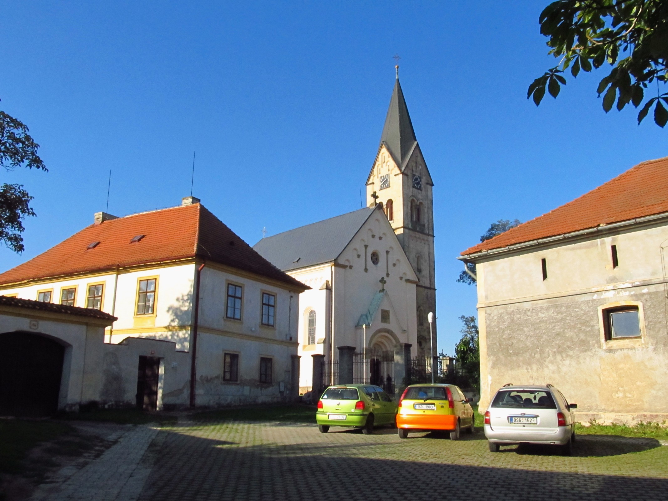Tady se dáme po červené kolem chatové osady a lesem do Nenačovic. Při pohledu na mapu vyvstává však problém, jestliže chceme Kačák kopírovat věrně, nezbývá než jít většinu cesty, vlastně až do Hostími, po silnici. Bereme to, snad nebude příliš frekventovaná.