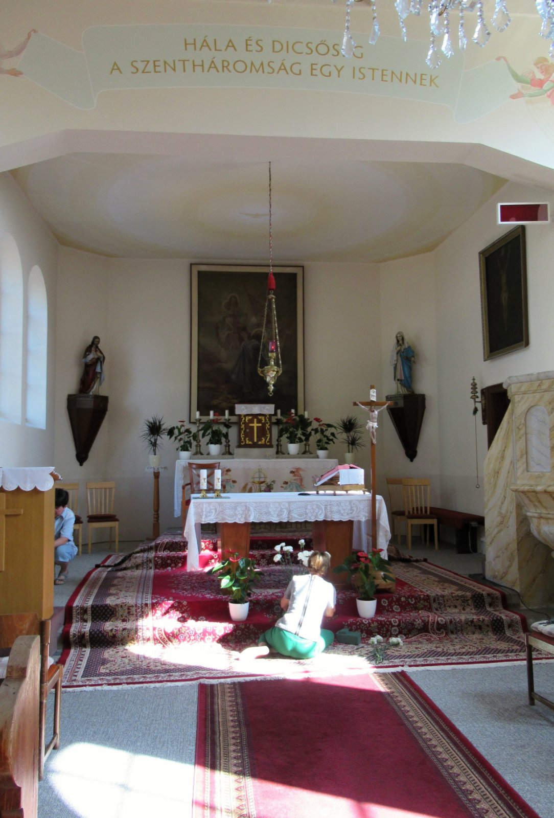Po snídani se Ota všiml, že je kostel otevřený. Jdeme se tam podívat. Je to malý prostý kostelík, ale je to tam hezké. Dvě děvčata tam připravovala výzdobu z čerstvých květin. Asi se tady bude něco dít. Je dobře, že my tu měli klid.