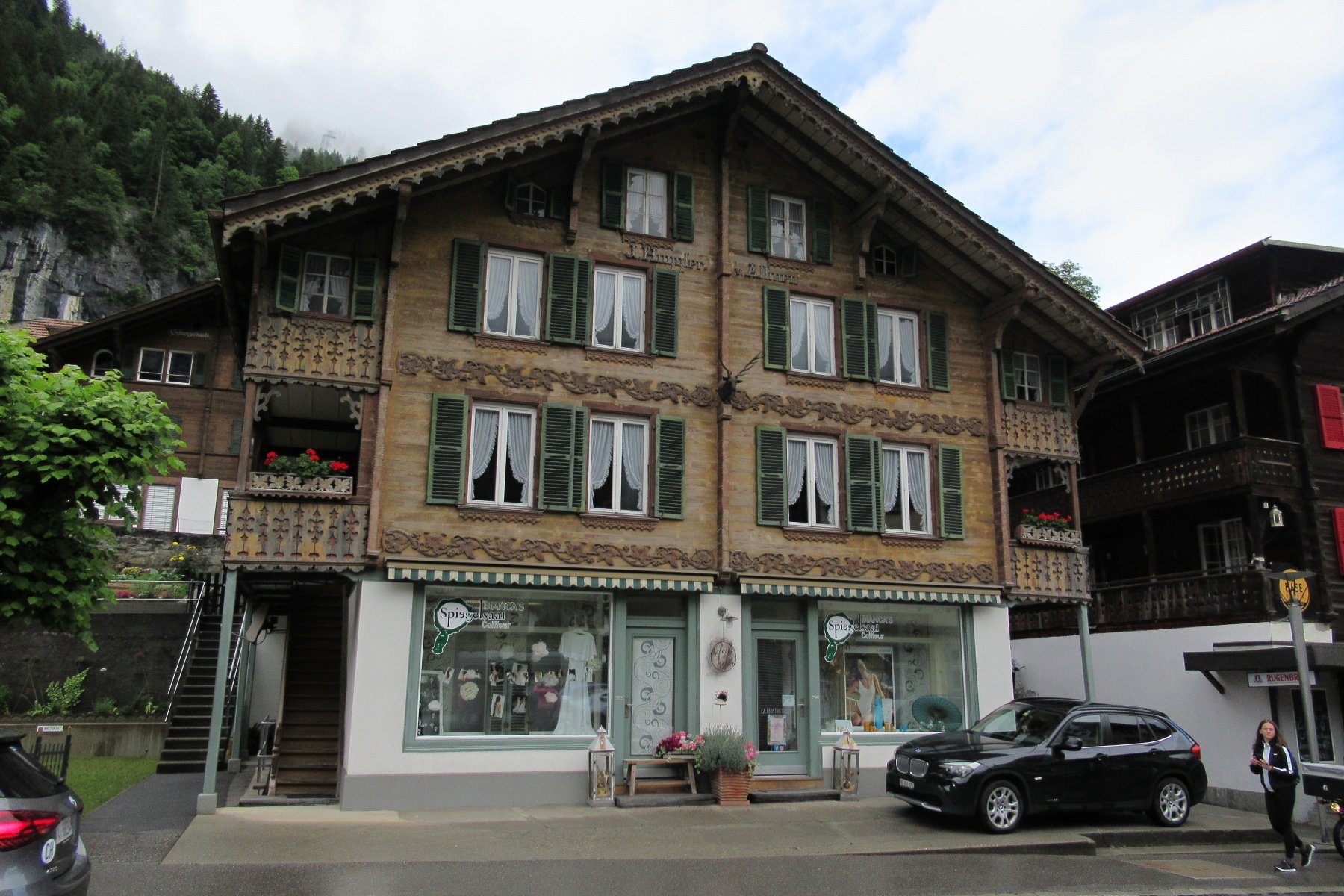 My se potřebujeme dostat téměř na druhý konec obce na další lanovku. Podle šipek je to 15 minut. Tady jsou snad jen ty nádherné typické aplské původní dřevěné chalupy. Jeden neví, kam se dřív podívat. Proti předchozí zastávce je tady nádherný klid, turistů je tu skutečně jen málo. Už neprší, ale je stále mlhavo, chvilkami dokonce tak, že je vidět jen na pár kroků. Utěšujeme se tím, že mlha klesá a nahoře bude snad hezky. Prostě tomu chceme věřit.