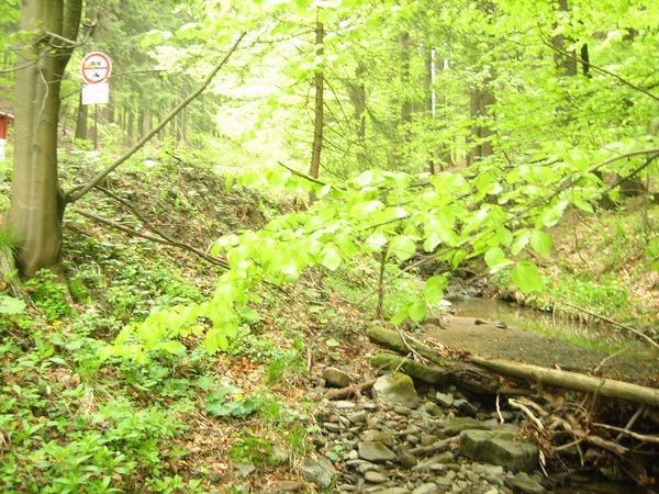Na výlet jsme se vydali 28.5.2008 odpoledne po příjemném občerstvení na terase hotelu Horal. Lesní cesta z výchozího místa odbočení ze silnice č. 487 je ještě asi 300 m přístupna i automobilům, pak je již zákaz vjezdu (obr. 1).