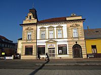 Kromě pohledu na restauraci, hospůdku, pizzerii, cukrárnu a několika obchůdků naše zraky nejvíce potěšil pohled na krásně opravený Lidový dům, který je v současnosti využíván radnicí. Za zmínku stojí i budova staré školy, ale daleko hezčí je sousední dům „U Bílé Růže.“ Náměstím prochází hlavní silniční tah a pohyb je tak omezen toliko procházkou po jeho obvodu. Maličkou oázu klidu před projíždějícími vozy nalezneme pouze v jeho trujúhelníkovém středu, kde se vedle busového nádražíčka nachází relax „koutek" s moderní fontánkou. Vedle stojí velmi pěkný Mariánský sloup z roku 1690, z něhož na okolní ruch a shon udiveně zhlížejí sochy sv. Florána, sv. Prokopa, sv. Jana Nepomuckého a "vévody" České země - svatého Václava.