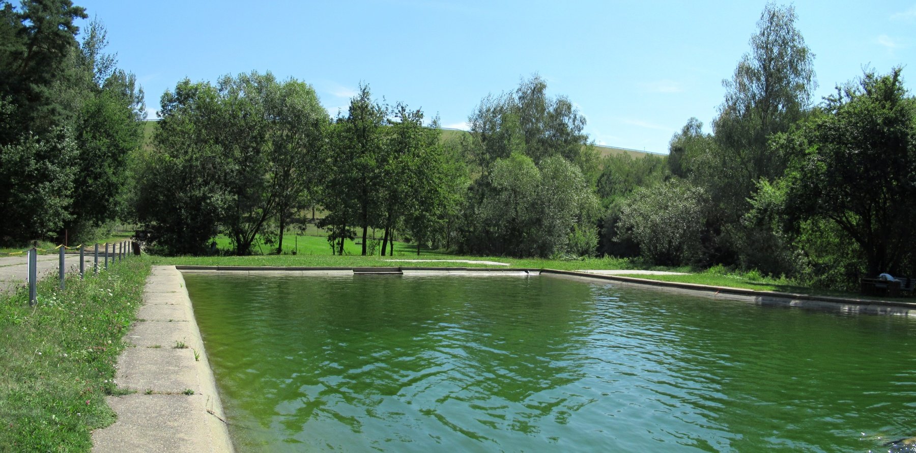 Přírodní koupaliště u v.n. Švihov - voda vypadá zeleně, ale to se jen zdá